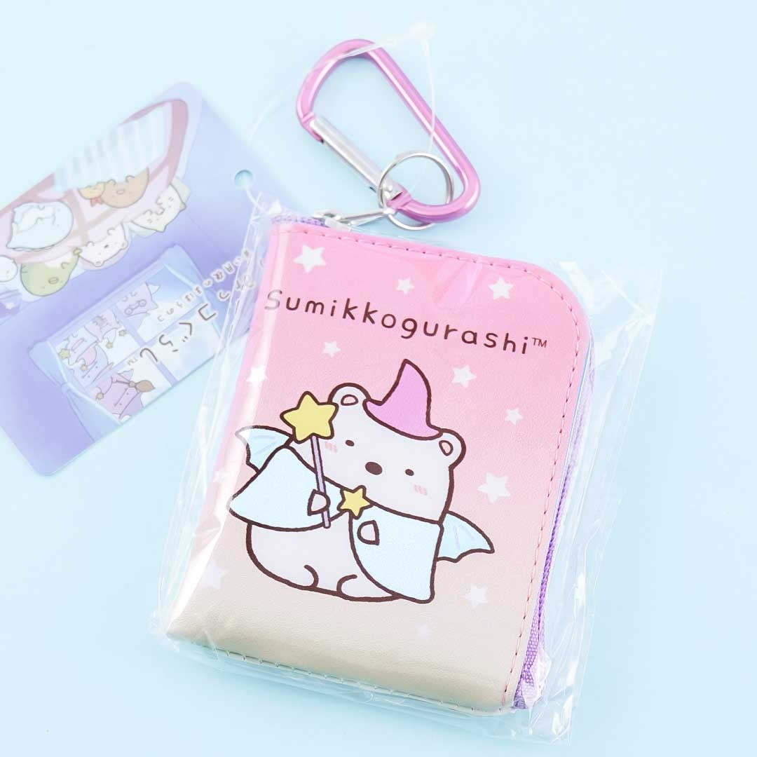 This faux leather pouch has a cute illustration of Shirokuma dressed as a wizard! Use this Sumikko Gurashi mini case with unique L-shaped zipper closure to keep your wireless earbuds from getting lost! You can attach this to your fave purse as it also comes with a metal carabiner.