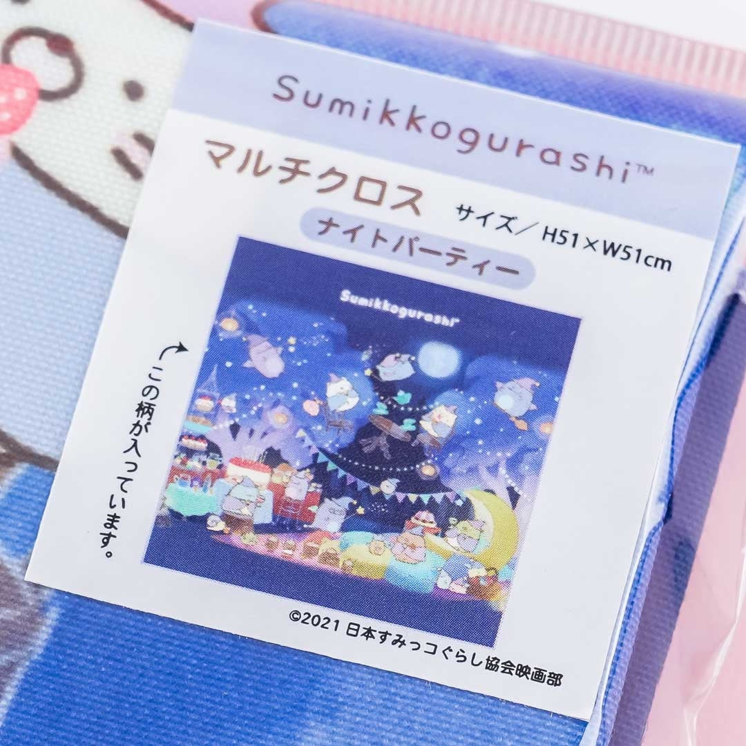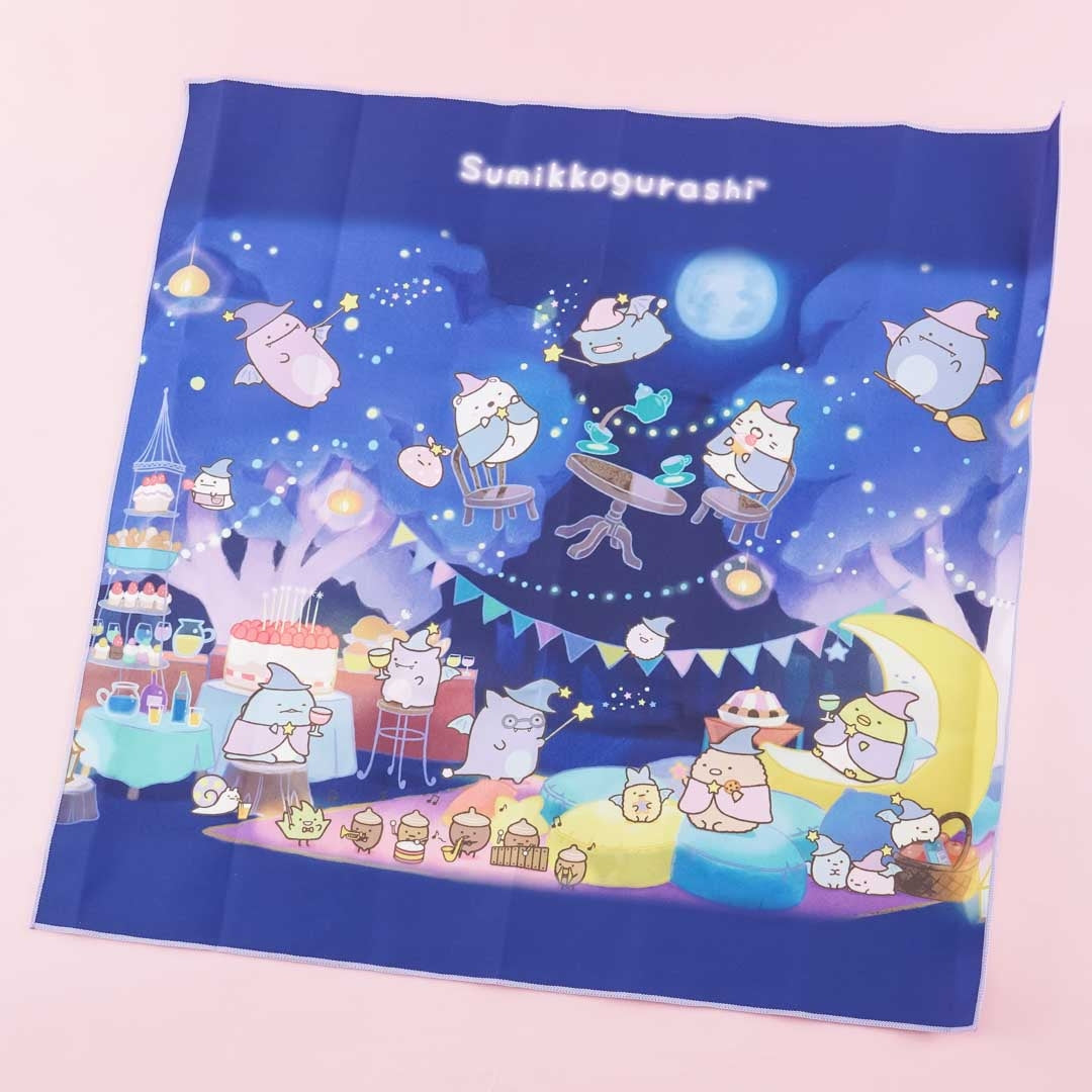 A cute multi-purpose cloth featuring prints of the Sumikko Gurashi dressed as wizards at a party