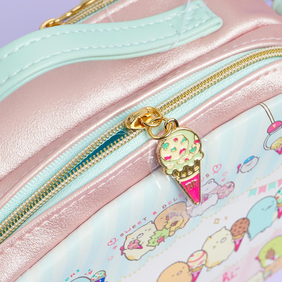 Carry around the essentials while you're out and about with this kawaii sling bag. It is a part of the Sumikko Gurashi x Baskin Robbins series. The bag features the Sumikko Gurashi cuties all lined up with ice cream cones. This zippered bag has two compartments so you can easily organize your stuff.