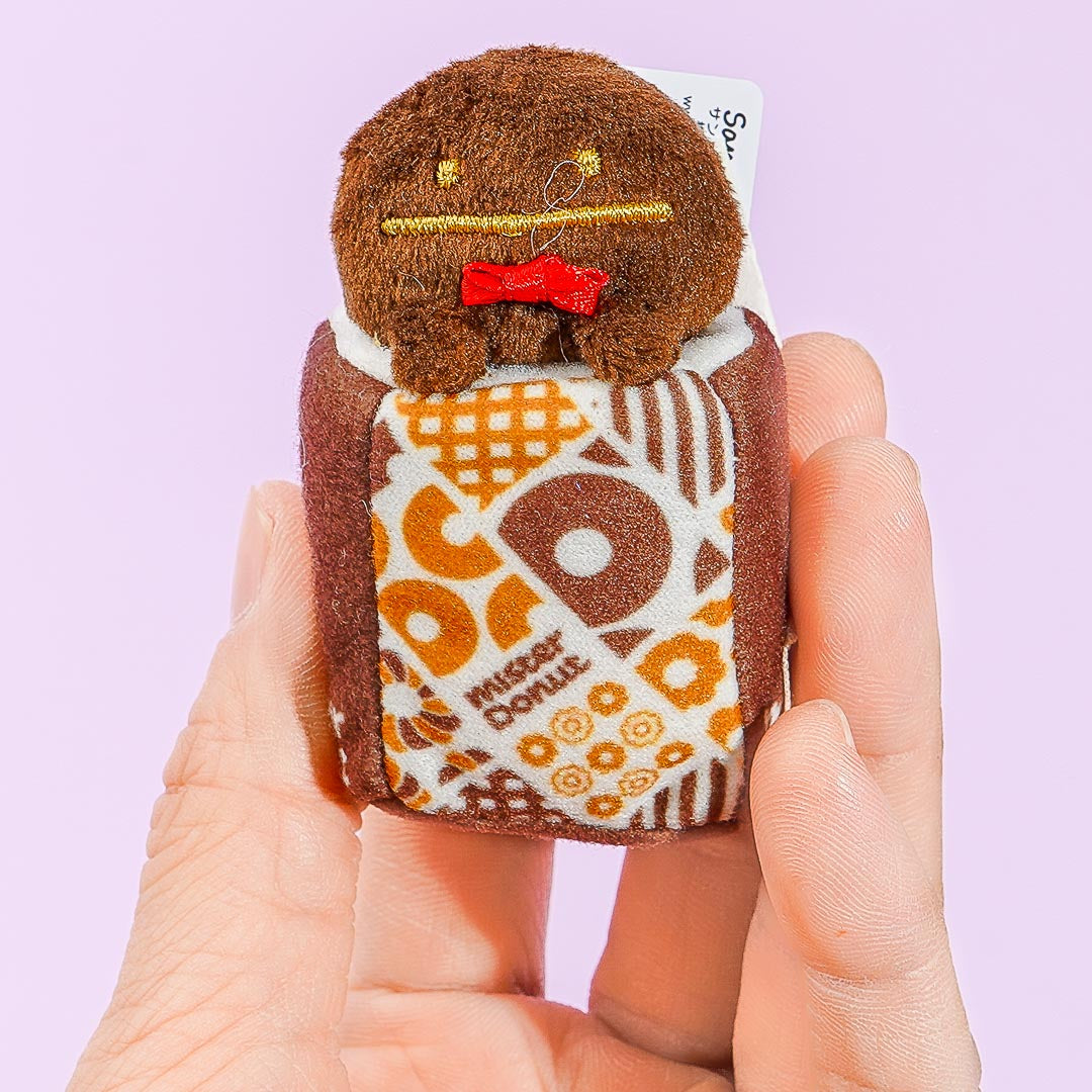 Kawaii-fy your shelf with this mini plushie! It features the black coffee bean from Sumikko Gurashi, Mamemaster — sitting on a fancy box with prints of Mister Donut pastries. You can also have fun playing with this cute plush toy!