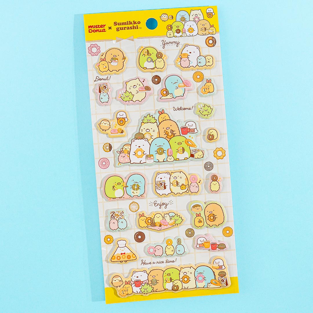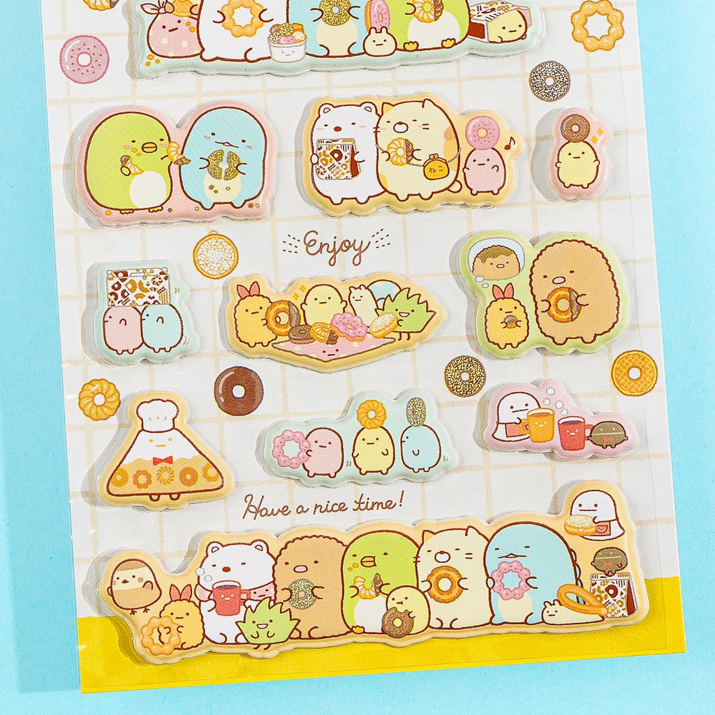 Decorate your scrapbooks and photo albums with these super cute and puffy stickers! The sheet has different die-cut illustrations of the Sumikko Gurashi gang eating their favorites from the famous food chain, Mister Donut.