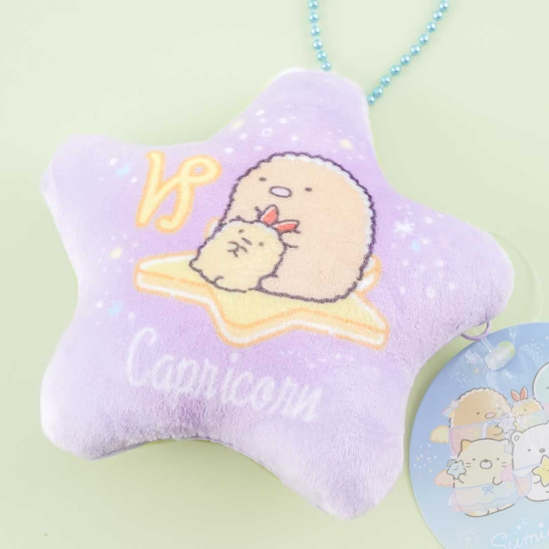 Use this kawaii star-shaped Sumikko Gurashi coin purse to store your small essentials. It features Tonkatsu and Ebifurai no Shippo and has the zodiac sign "Capricorn" written on it. You can also bring it along with you easily by attaching it to your bag using its ball chain.