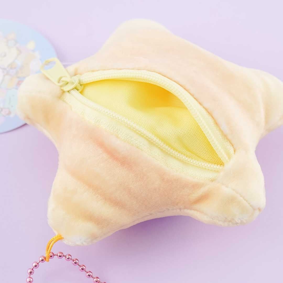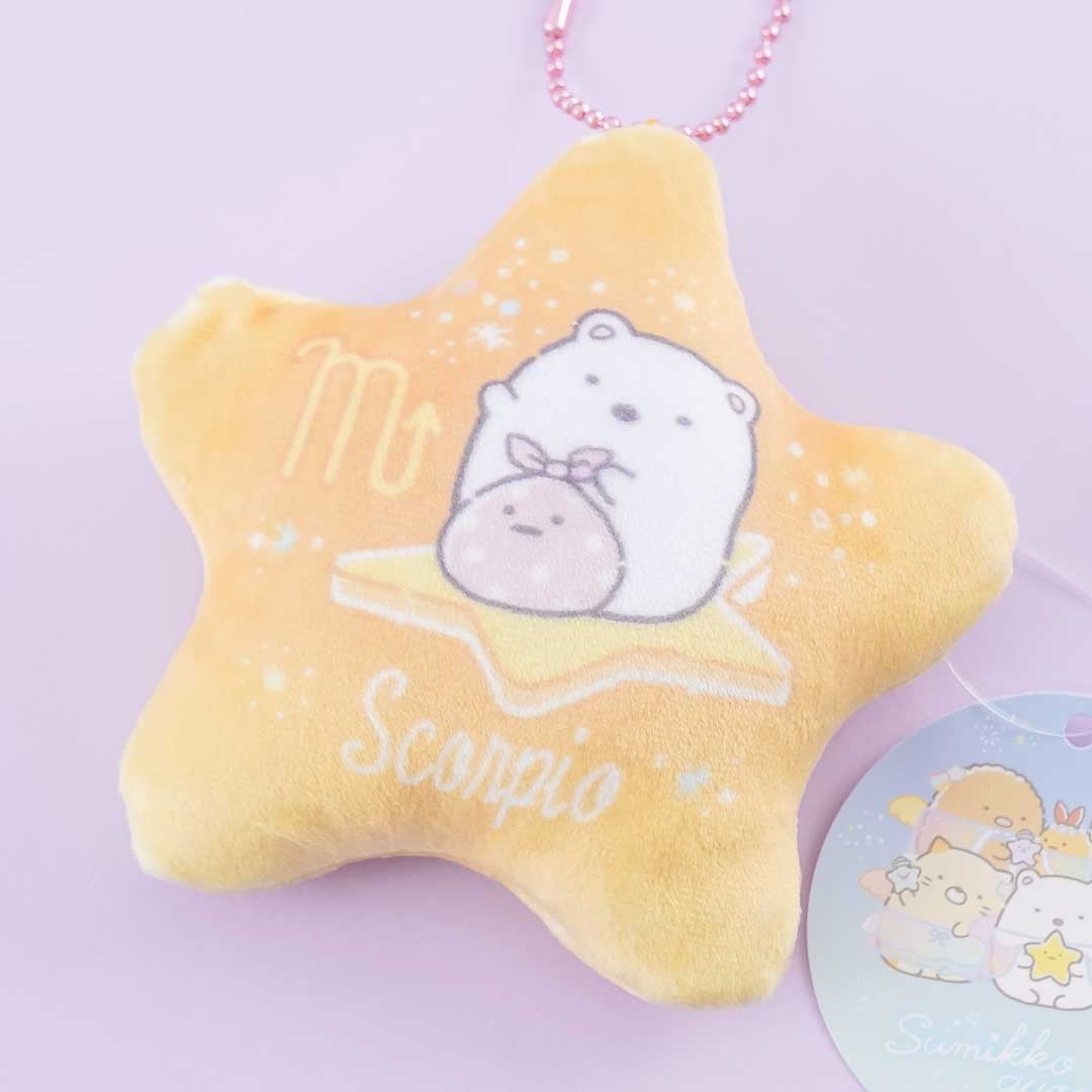 This super cute zippered coin purse is shaped like a star. It features a print of Shirokuma and Furoshiki from the Sumikko Gurashi with the Scorpio zodiac symbol! You can attach it to your favorite bag using its removable ball chain.