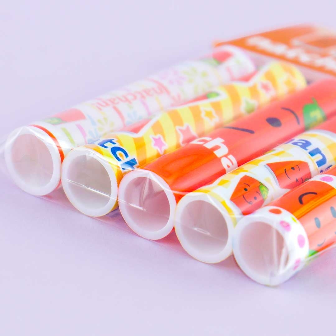 These super cute caps look like little packs of Natchan! orange fruit juice from Suntory. Place these kawaii pen caps on your pencils to prevent their lead tips from accidentally breaking off!