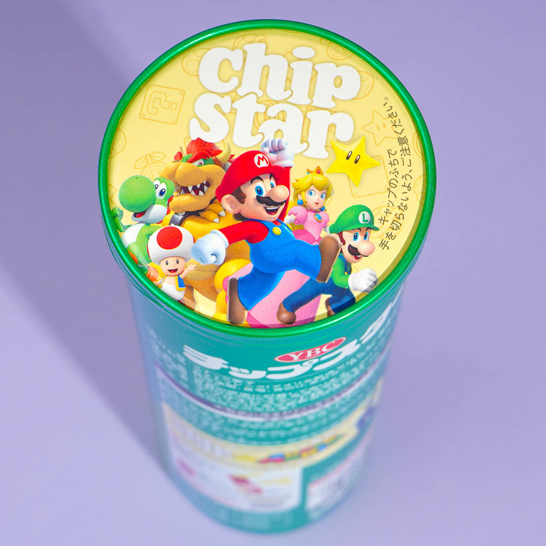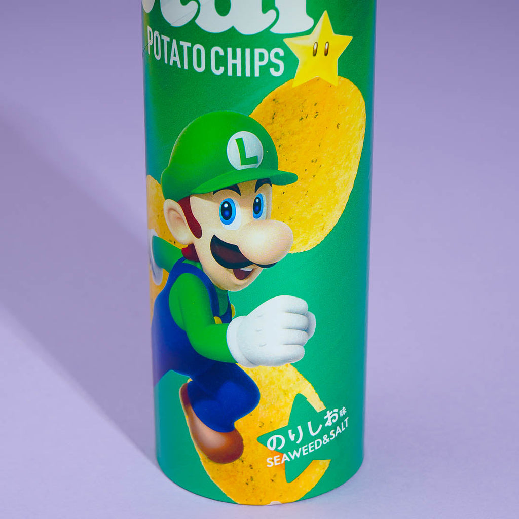 This large tube of potato chips features a print of Luigi from Super Mario. Add it to your snack haul for your gaming weekend with your buddies! It has a delicious salted seaweed flavor that will make you want to eat more.