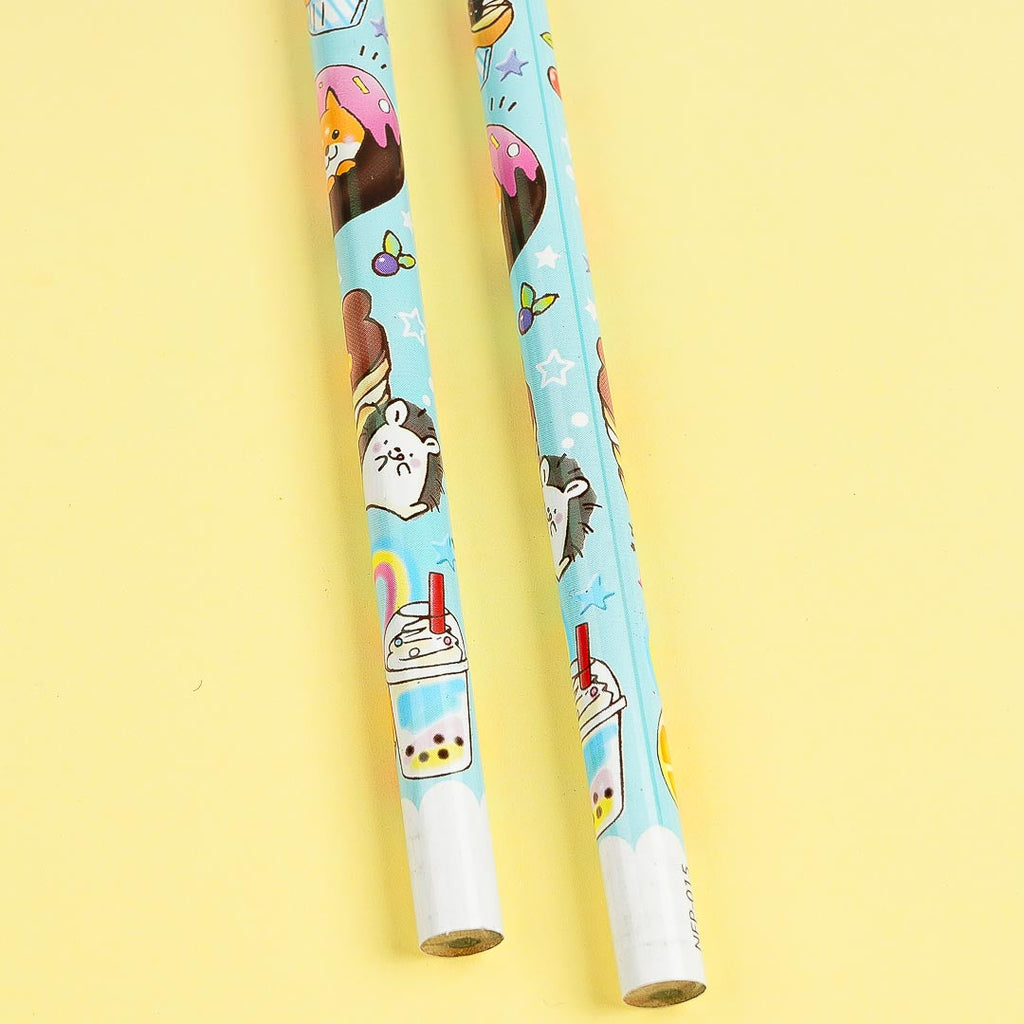 This cute pencil set features kawaii animals and desserts with a blue background! Use it to do your homework!