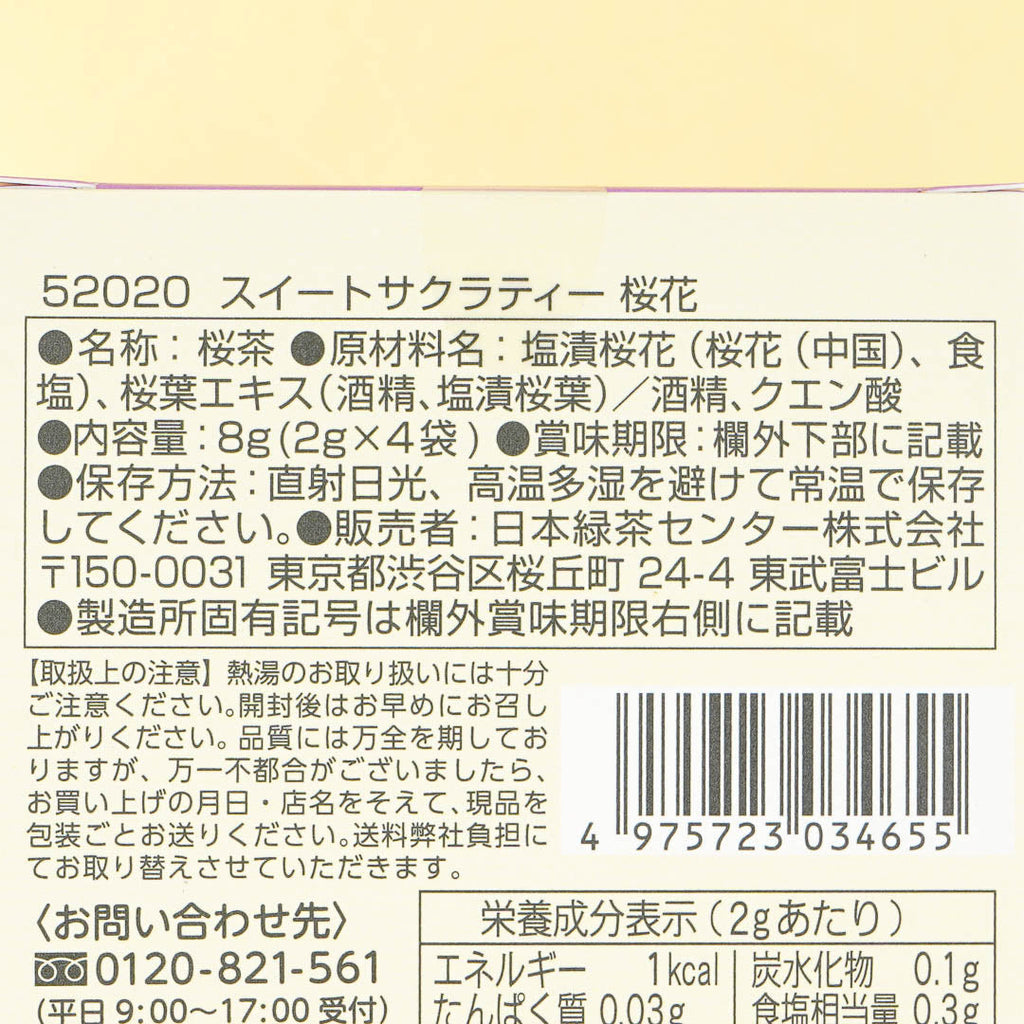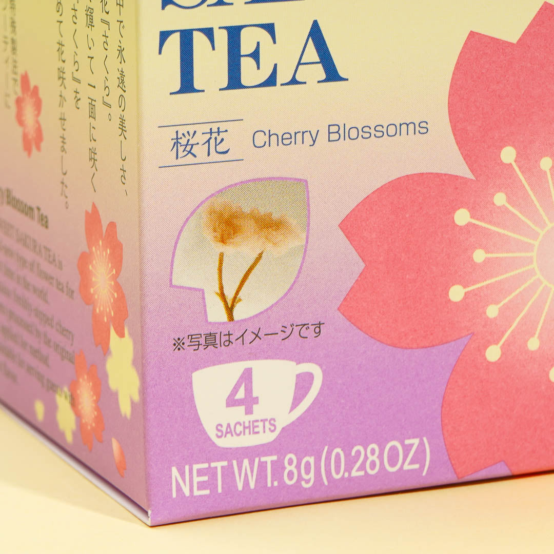 Enjoy the taste of cherry blossoms with this box of tea bags! Each tea bag makes for a cup of slightly sweet sakura tea. Inside are salted cherry blossoms and leaves - watch the flowers open when submerged in hot water! The tea goes perfectly with your favorite dessert.