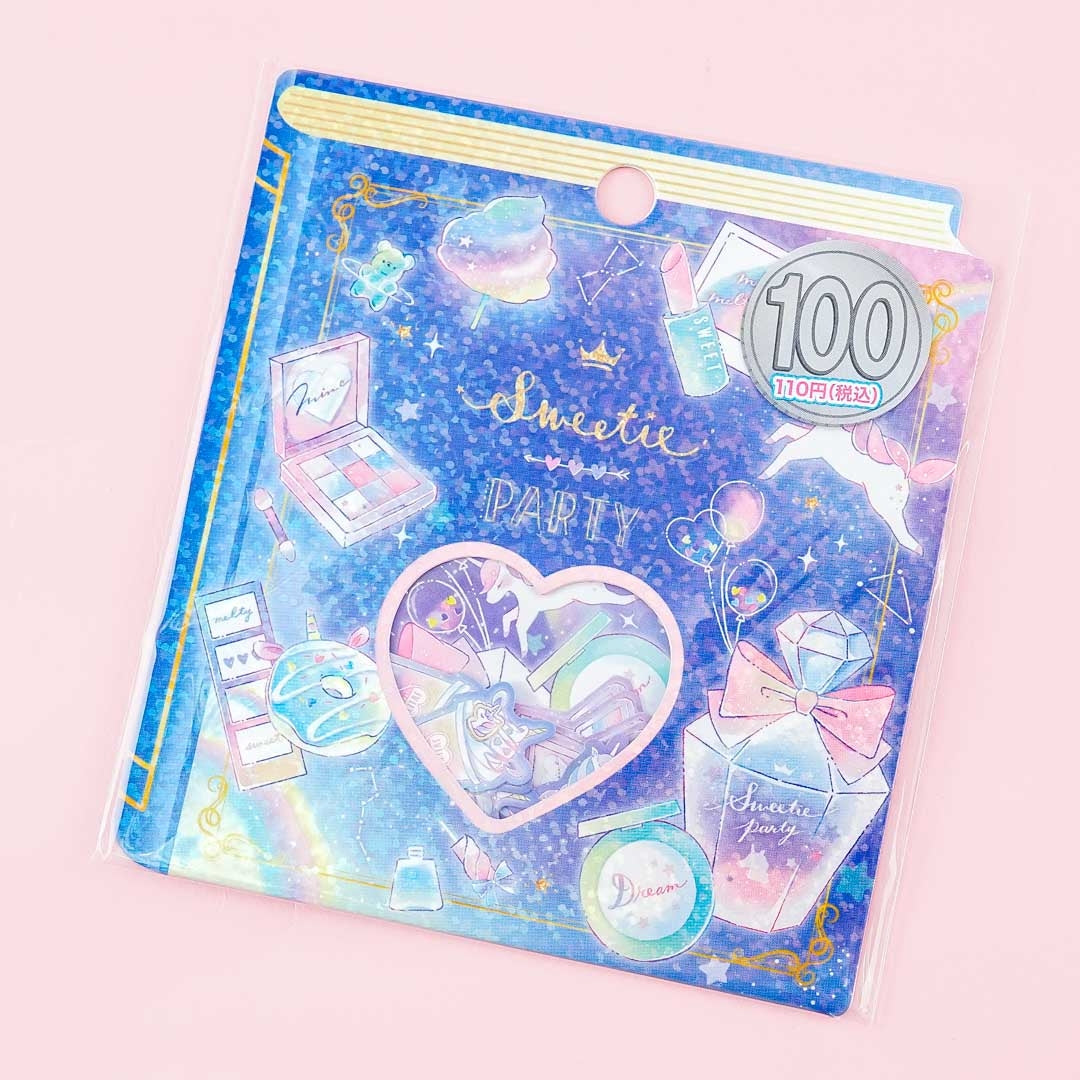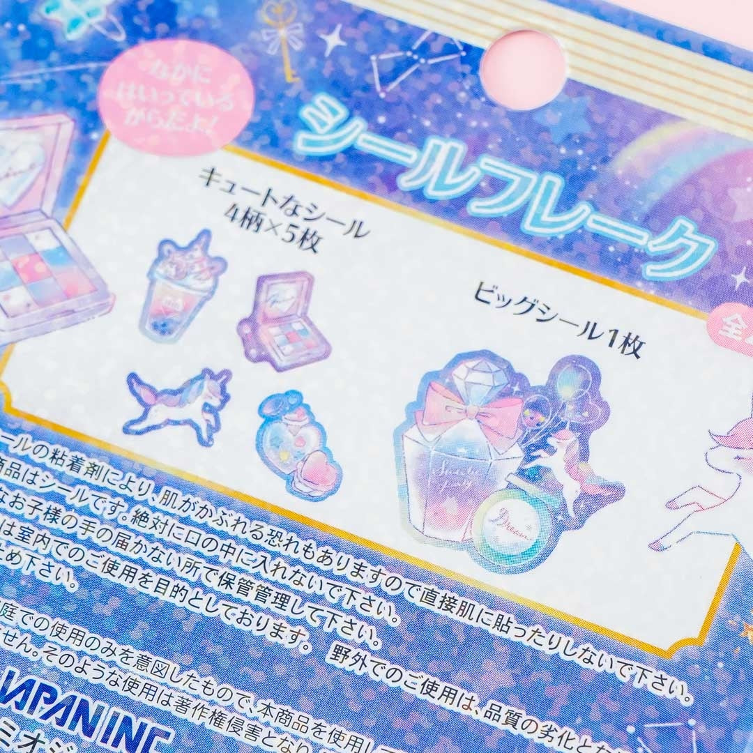 A super kawaii pack of die-cut sticker flakes featuring unicorns, make-up, and other cute things