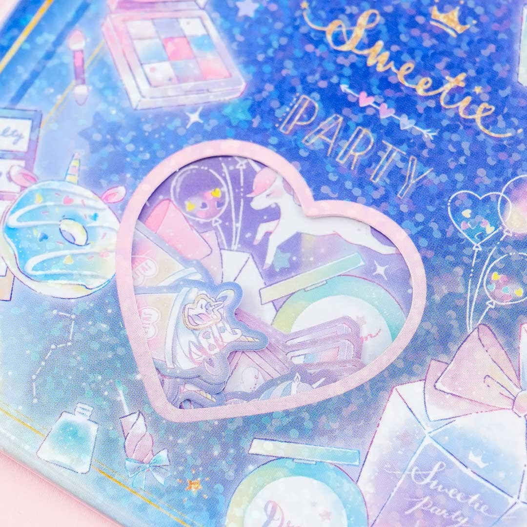 A cute sticker pack in pretty packaging! A "party" takes place with plenty of cute things to celebrate with... Great color scheme with a "night" background!