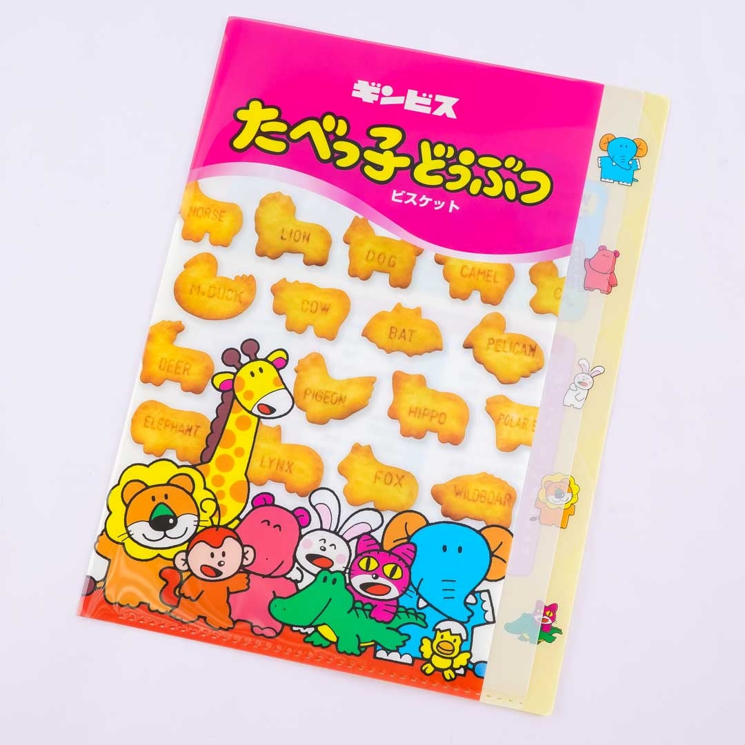 Store your important documents in this A4 file folder featuring illustrations that resemble the packaging of Tabekko Animal Biscuits. You can arrange your files easier as it has five different sections with side tabs.