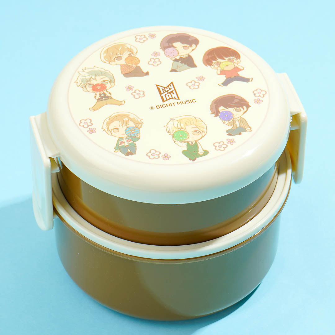 Bring along this super cute lunch box to your next hangout with your K-pop buddies. It features prints of TinyTAN characters from BTS surrounded by flowers. This lunch box has two stackable compartments with a middle layer containing a fork.