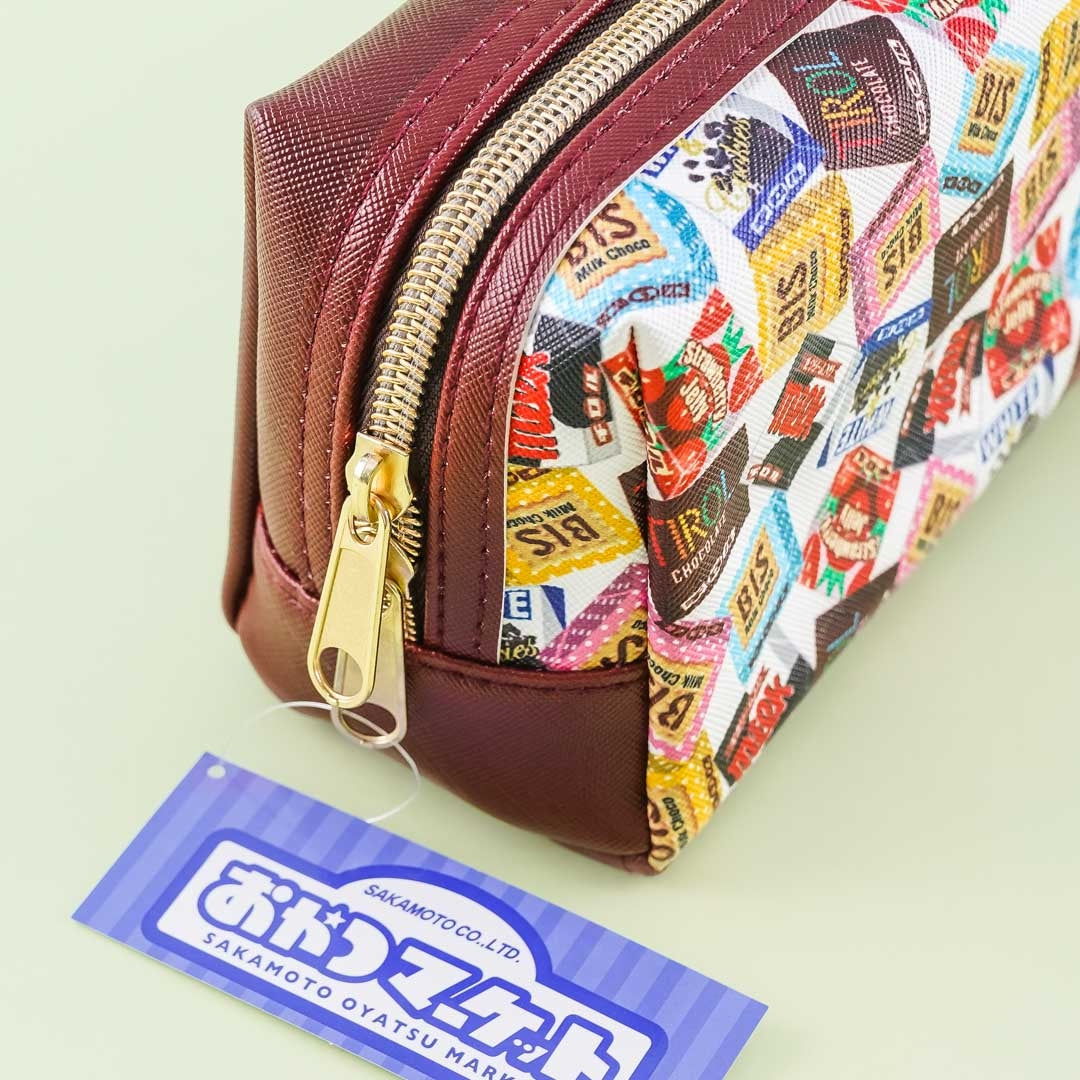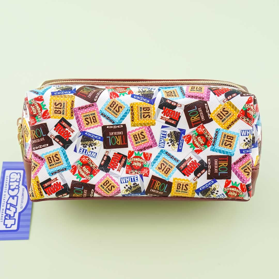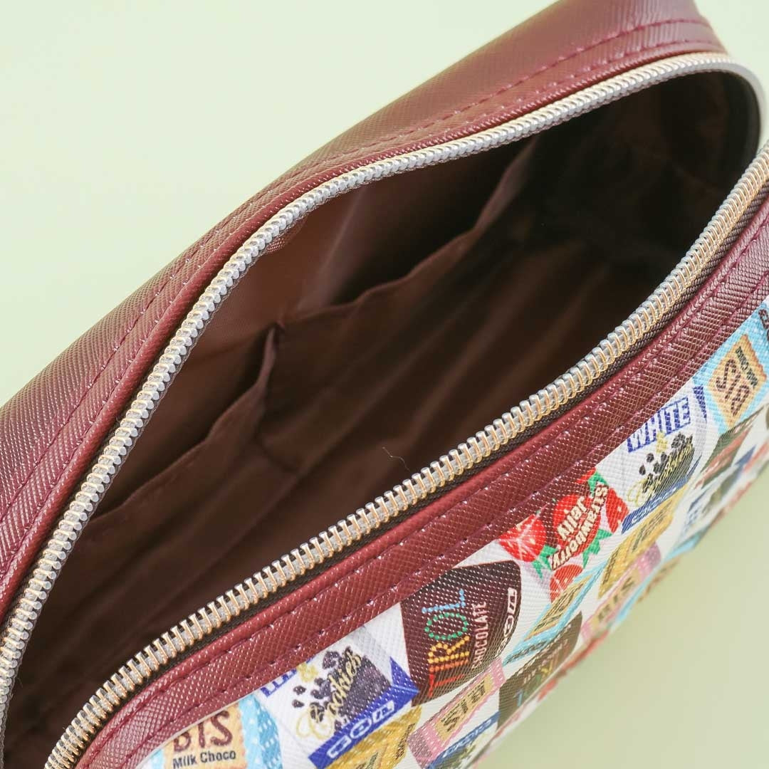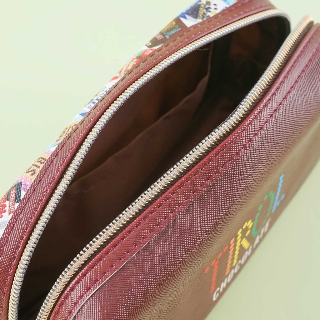 This cute pen case made of synthetic leather is roomy enough for your favorite pencils and markers! It’s decorated with prints of the different mini choco bites from the iconic Tirol Chocolate company, has three inner pockets, and comes with dual zipper closures.