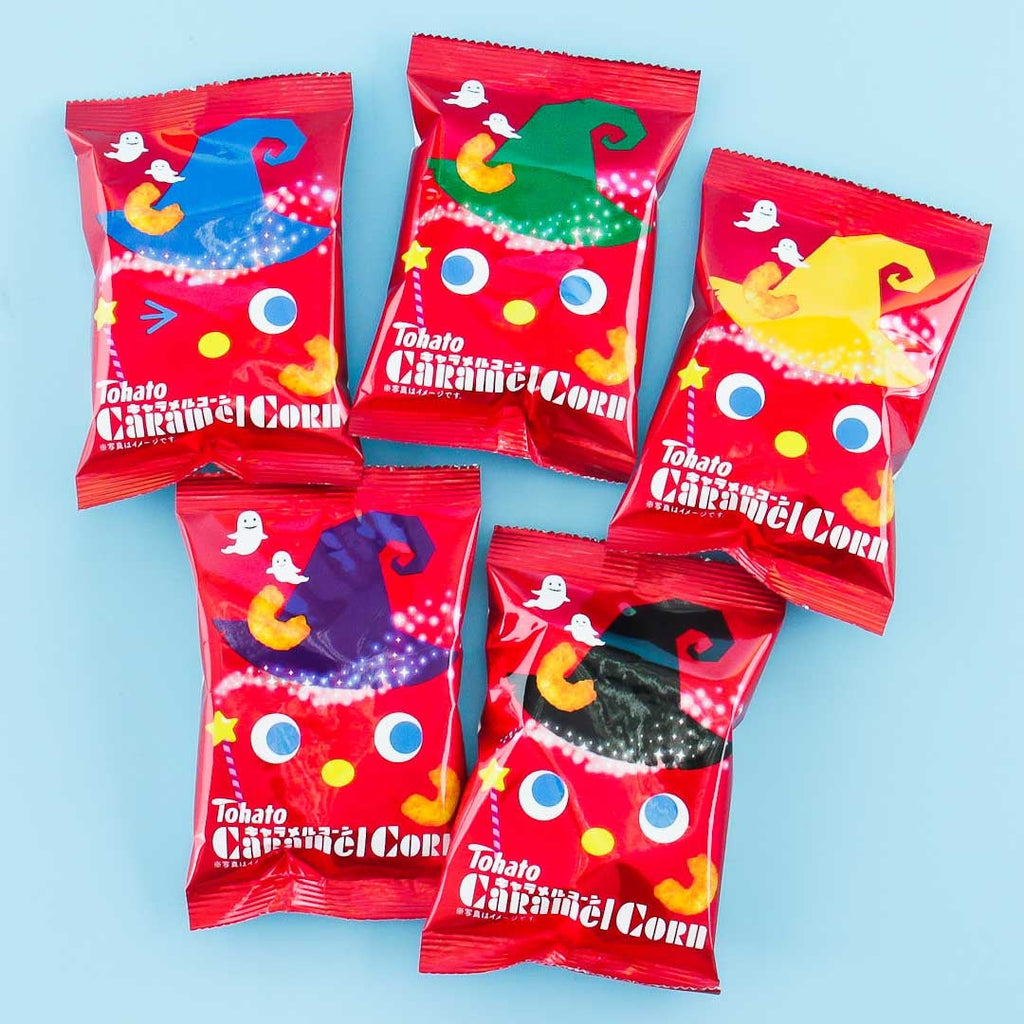 6 mini packs of crunchy corn snacks in spooky witch Halloween packaging