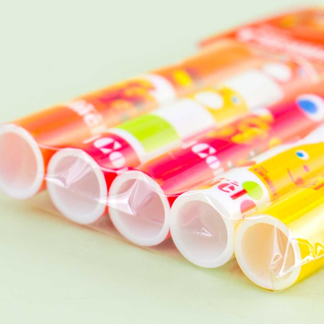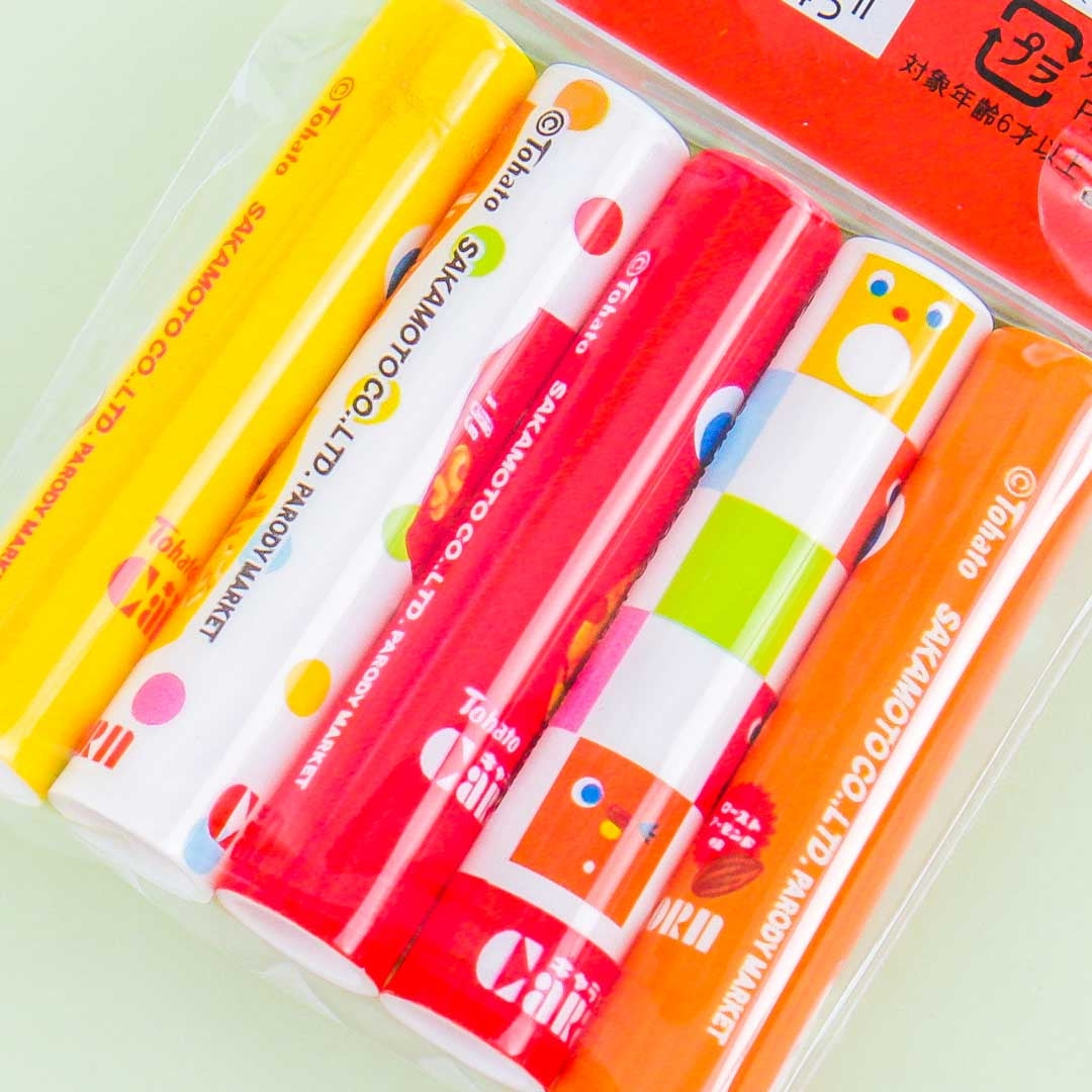 Keep your pencils sharp by protecting the lead tips with these cute caps! Each piece resembles the packaging of Tohato Caramel Corn puff snacks.