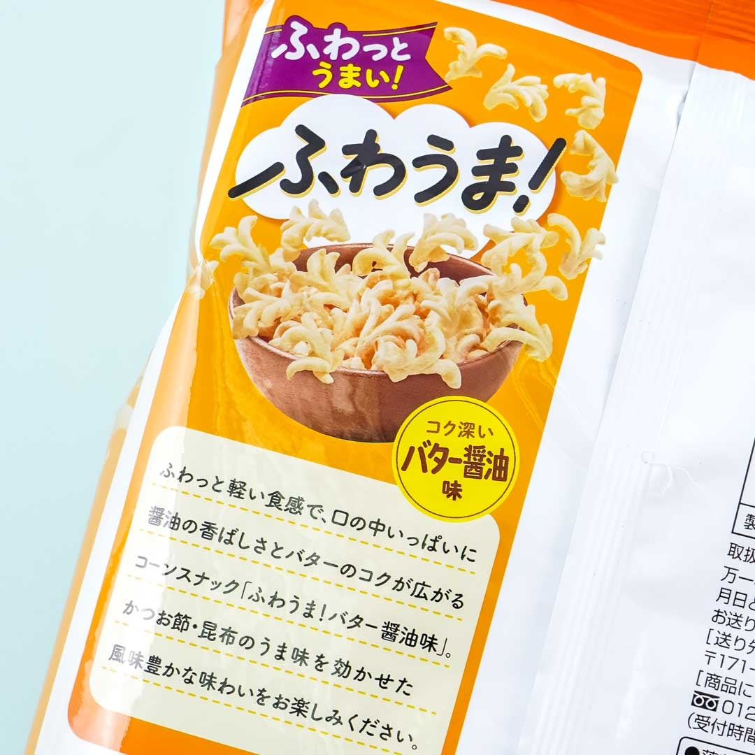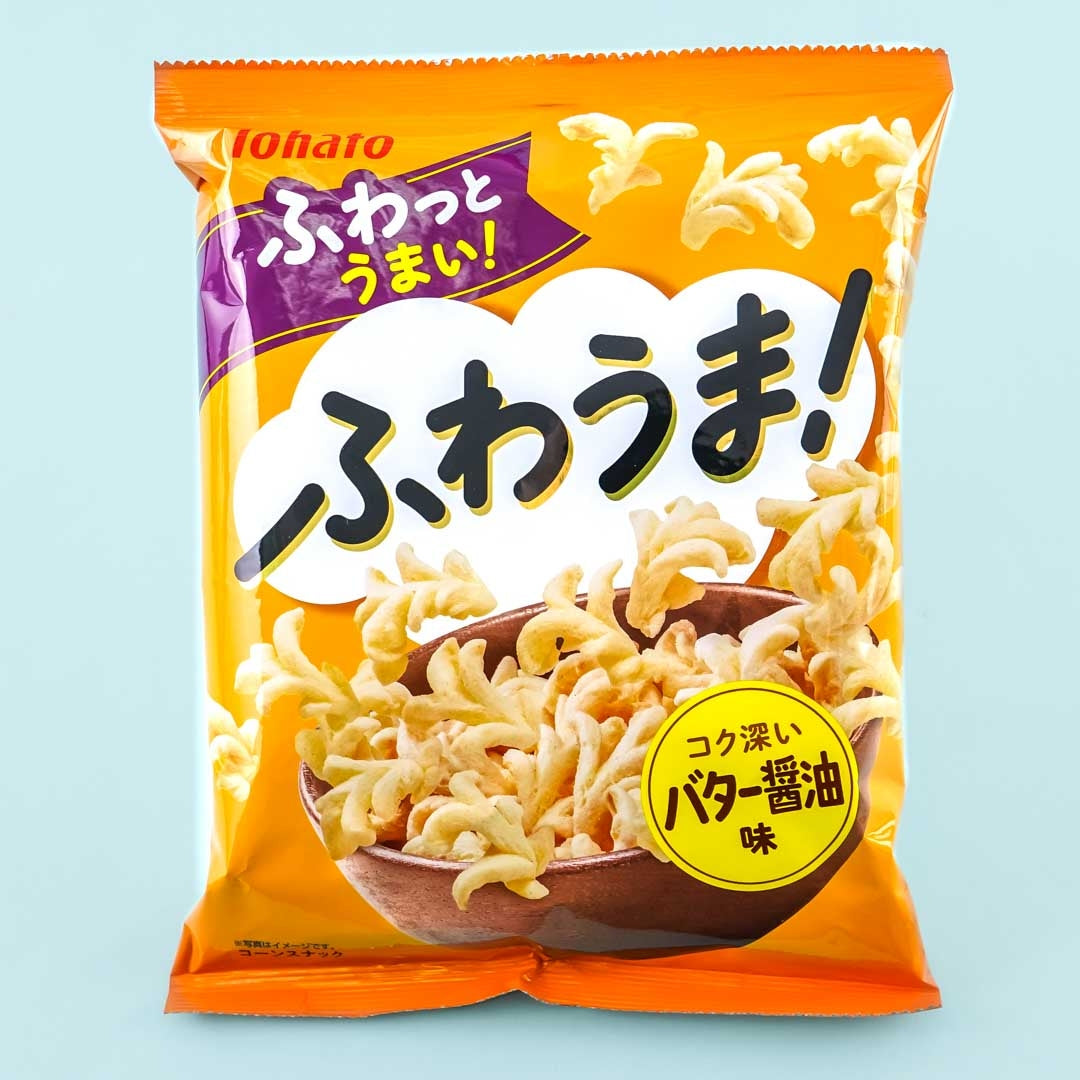 A pack of melt-in-your mouth corn snacks with a unique butter and soy sauce flavor