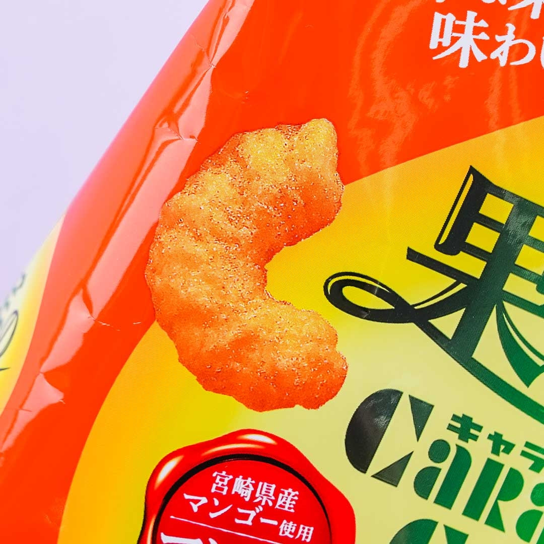 • A bag of Miyazaki ruby red mango-flavored corn puffs coated with mango powder