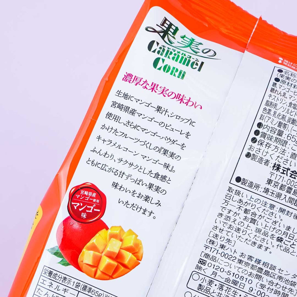 Enjoy this fiftieth edition of Tohato’s famous Caramel Corn puffs in mango flavor! Each crunchy piece is also coated with a sweet and tangy mango powder. The fruit purée used for these corn puff snacks comes from the famous ruby red mangoes from Miyazaki Prefecture!