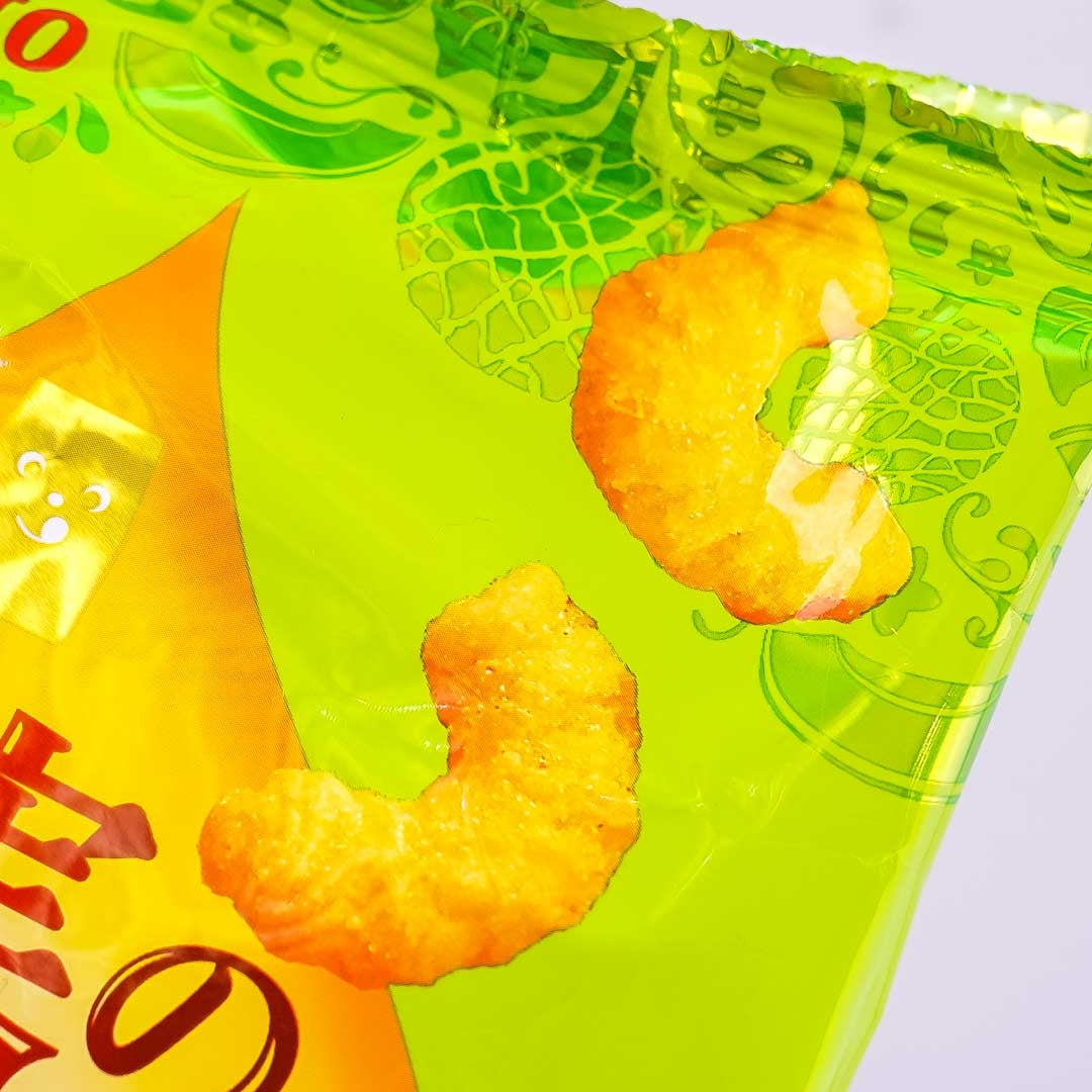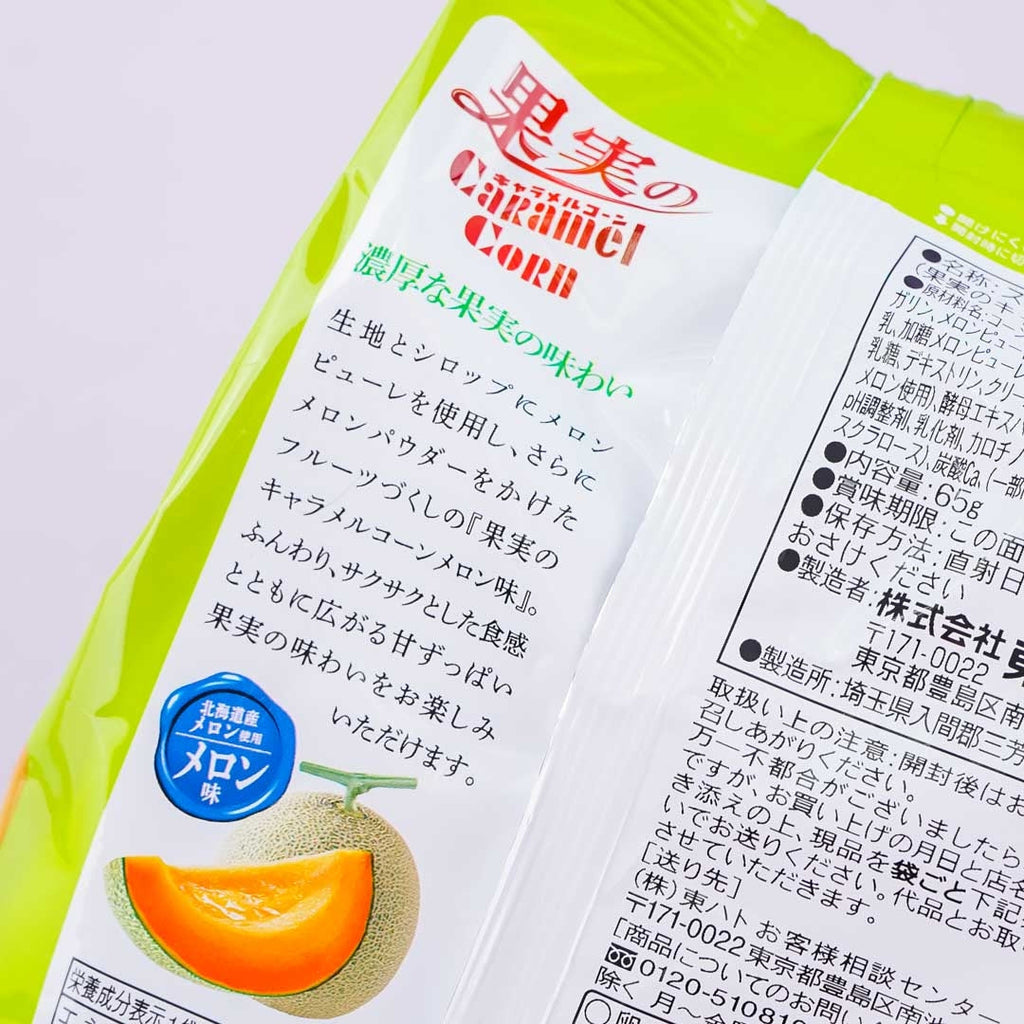 Enjoy the flavor of Hokkaido melon when you snack on this pack of tasty Caramel Corn! This fruit-based snack is made with melon puree mixed together with dough and syrup. It's already sprinkled with melon powder.
