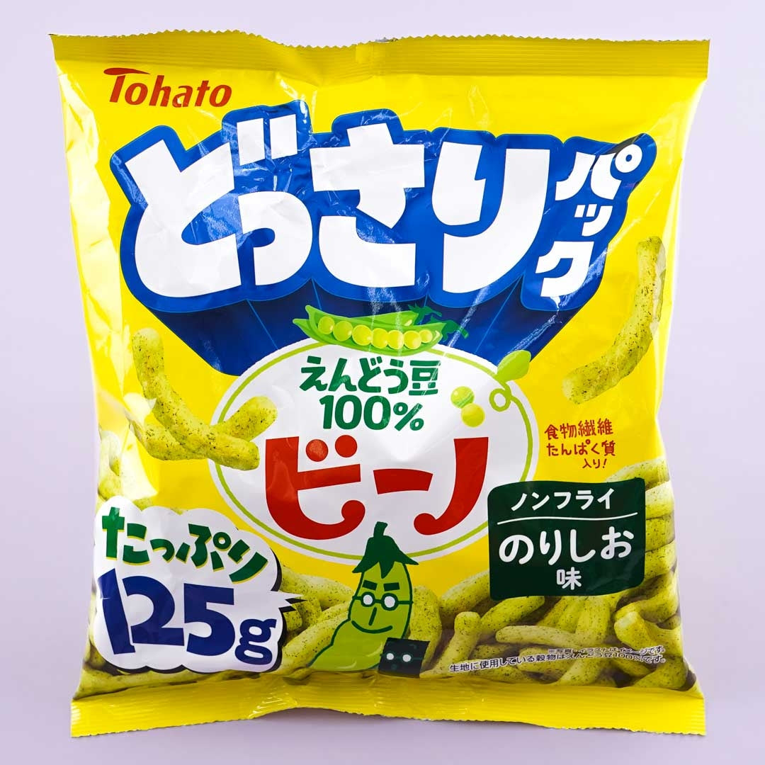 A large pack of seaweed and salt-flavored edamame pea snacks