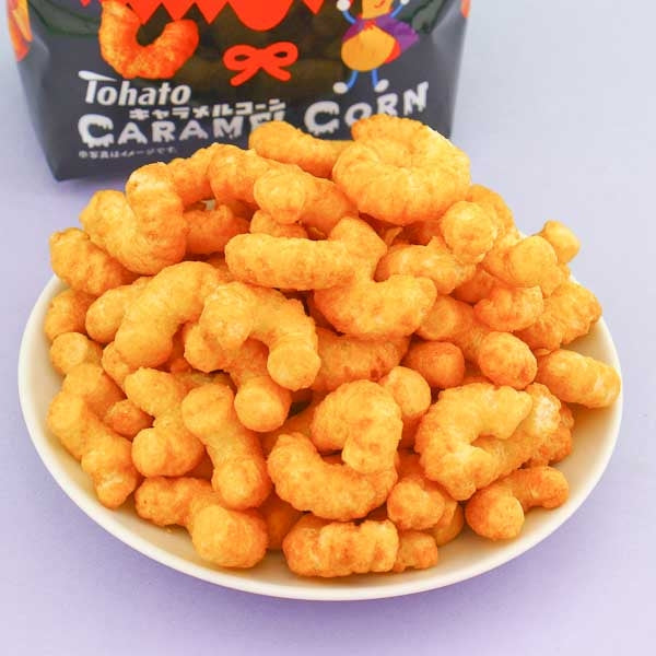 This pack is full of sweet crispiness! Tohato has made these famous caramel corn treats since 1971 and they are popular for a reason! Compared to original Tohato caramel corn, this pack is a bit more special! This corn snack bag mixes two amazing flavors, caramel, and roasted peanuts! Together these tastes make a whole new corn snack which is tastier than ever! Try out these funny Japanese snacks with your friends and family! And what makes them even more special is the special Halloween edition packing - be sure not to be scared when eating delicious corns snacks.