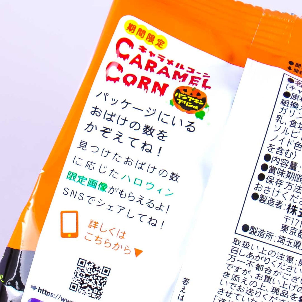 • A Halloween-themed bag of caramel corn snacks flavored like pumpkin pudding