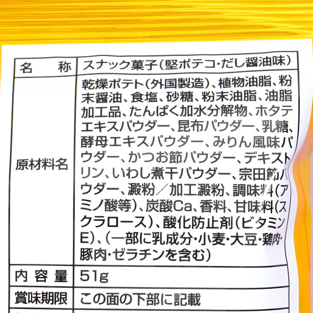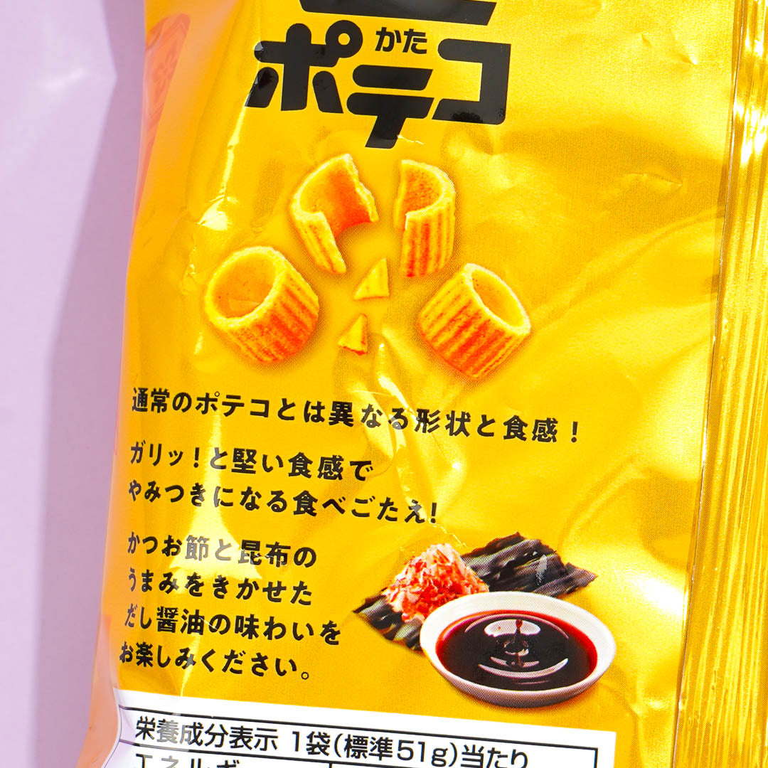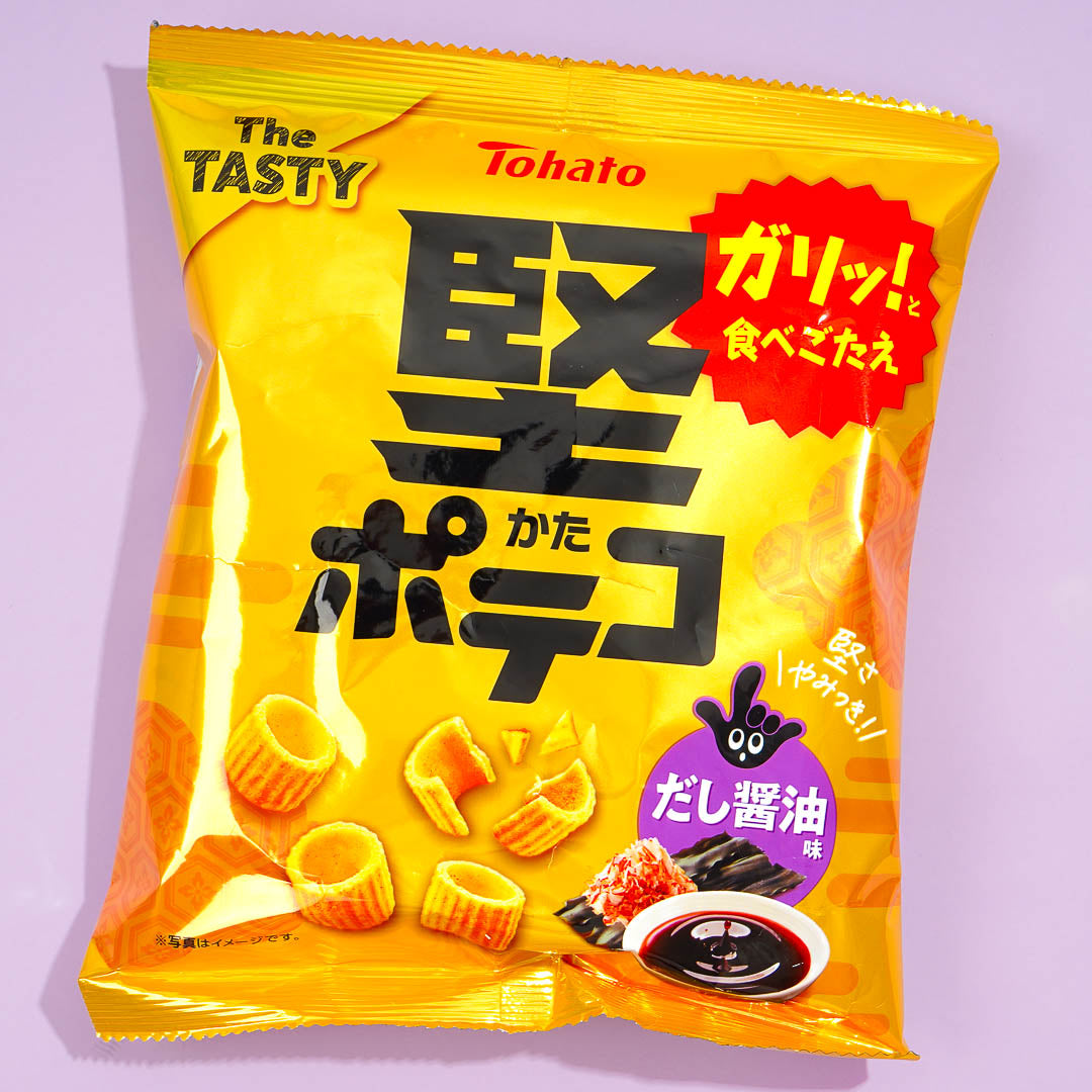 Nibble on these hard, jagged potato rings! They're super crunchy and addictive. Each piece is coated in a powder that combines the umami of bonito flakes, kelp, scallop dashi, and soy sauce.