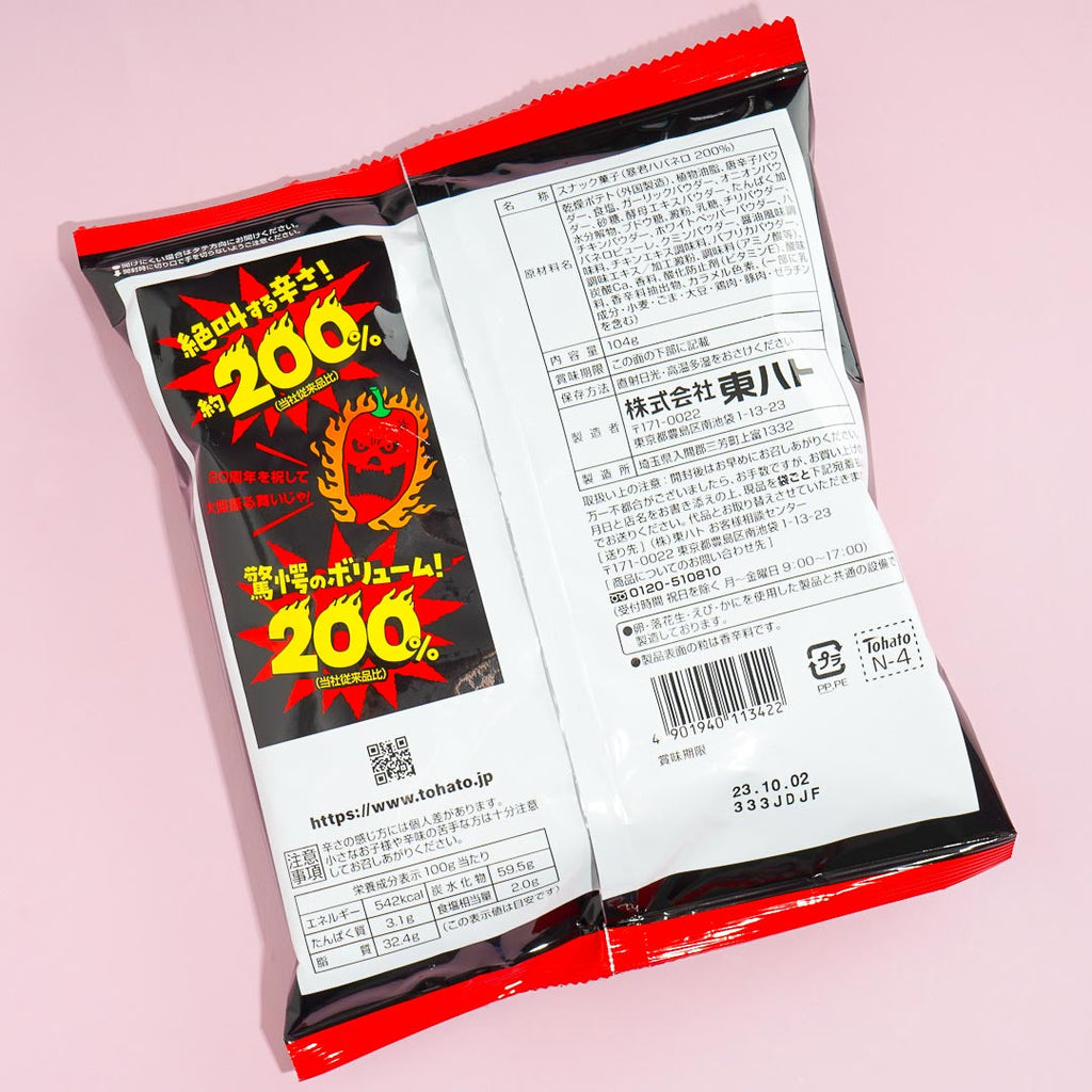 If you're a spice lover then you'll enjoy this pack of chili potato rings! Each piece has a 200% level of spice and is not for the faint-hearted. The packaging features a giant red habanero chili pepper that looks very angry. Show your friends who's boss and challenge them to an eating contest. The first one to tap out loses!