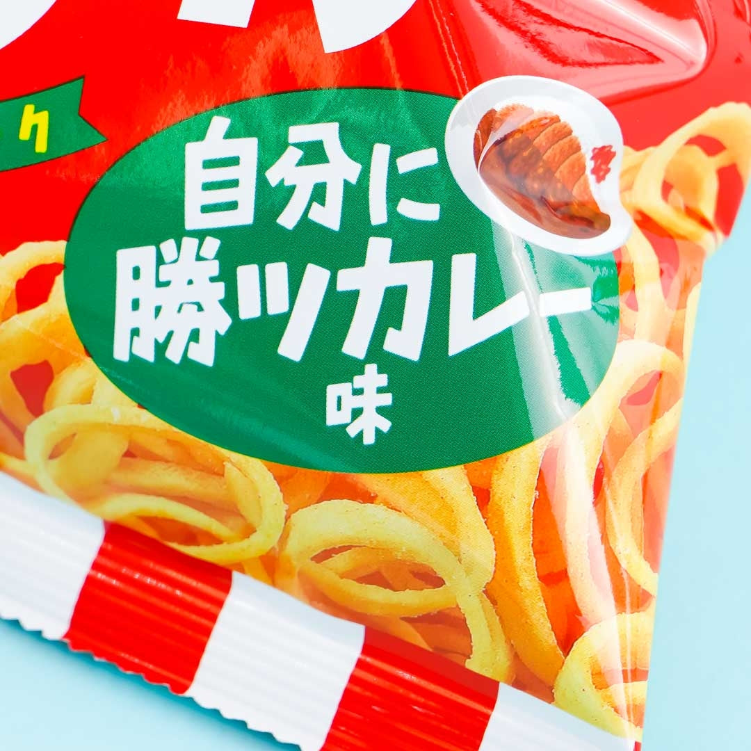 Enjoy munching on these thin potato ring snacks! Each piece tastes like savory pork curry. This limited edition treat was created to wish good luck to students who are about to take their major examinations.
