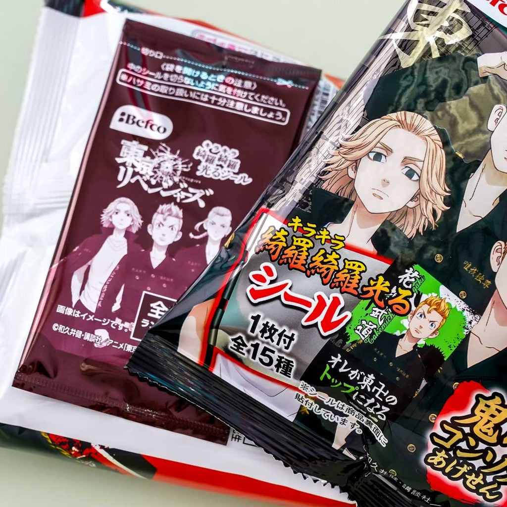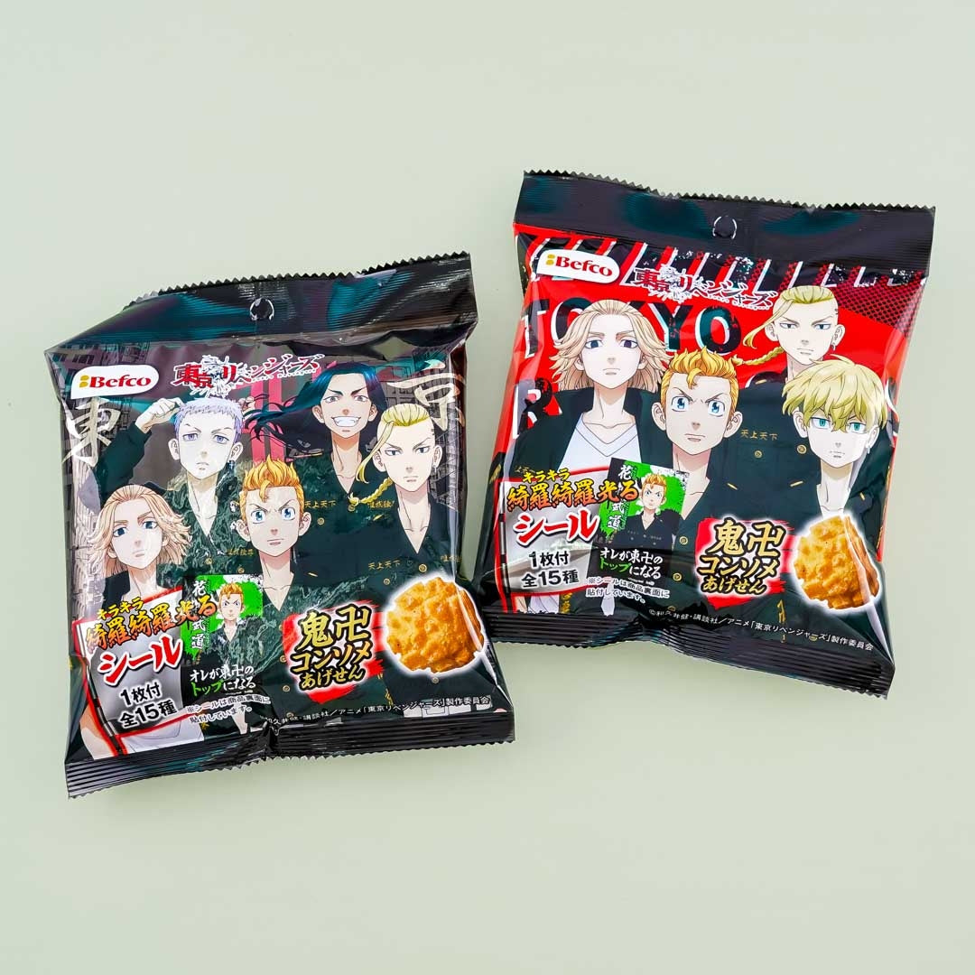 Enjoy snacking on these round-shaped rice crackers snacks that taste like the fiery demon consommé! It features the characters of the popular animated series “Tokyo Revengers” on the packaging. These savory treats also come with a free sticker. You’ll receive a random pack and sticker design when you order!