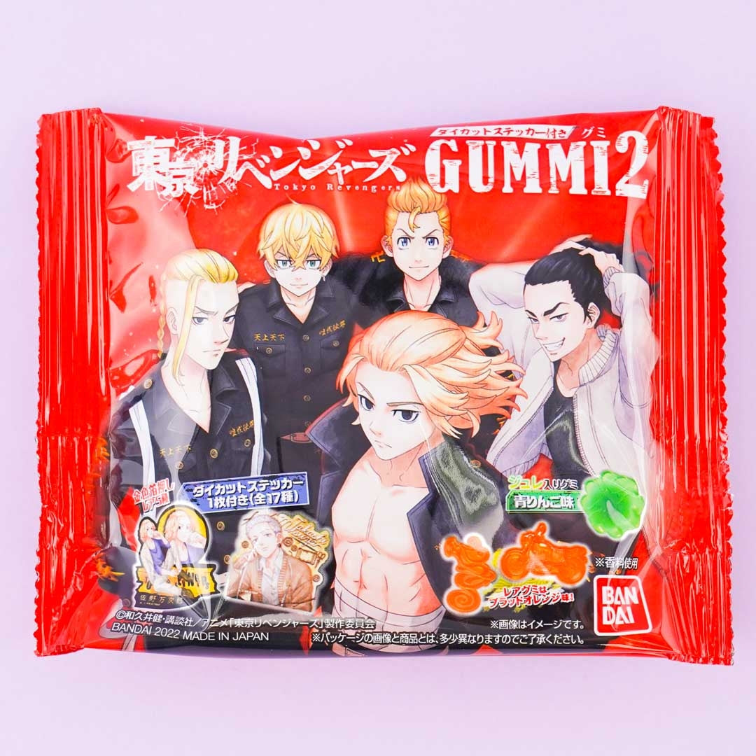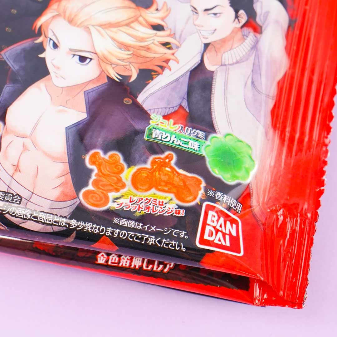 Find the lucky blood orange-flavored gummies shaped like Mikey's Bike and Draken's tattoo
