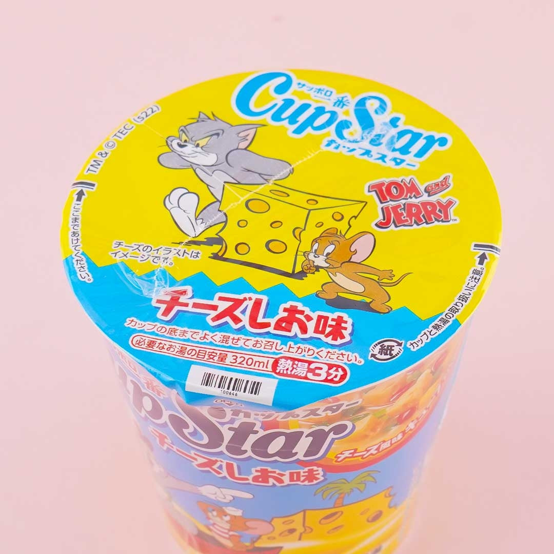 Make your own warm snack during rainy days with this cup of instant ramen illustrated with Tom and Jerry. This unique cup of salty instant noodles uses cheese-flavored cubes inspired by the cheese in cartoons.