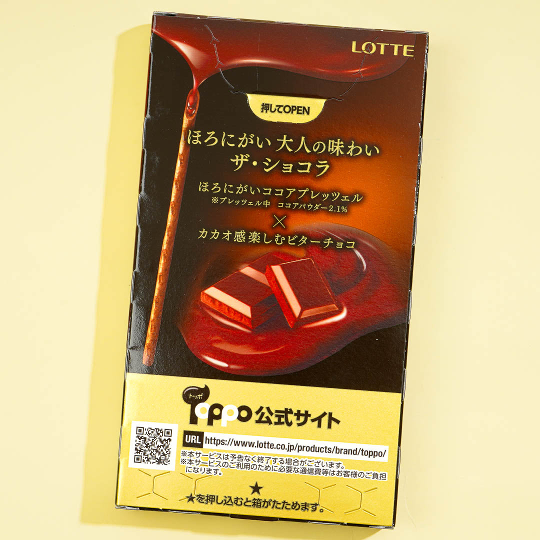 Toppo from Lotte are delightfully yummy pretzel sticks with sweet chocolate filling. These special edition double chocolate Toppo have chocolate coated pretzel shells with semi-sweet bitter dark chocolate centers.