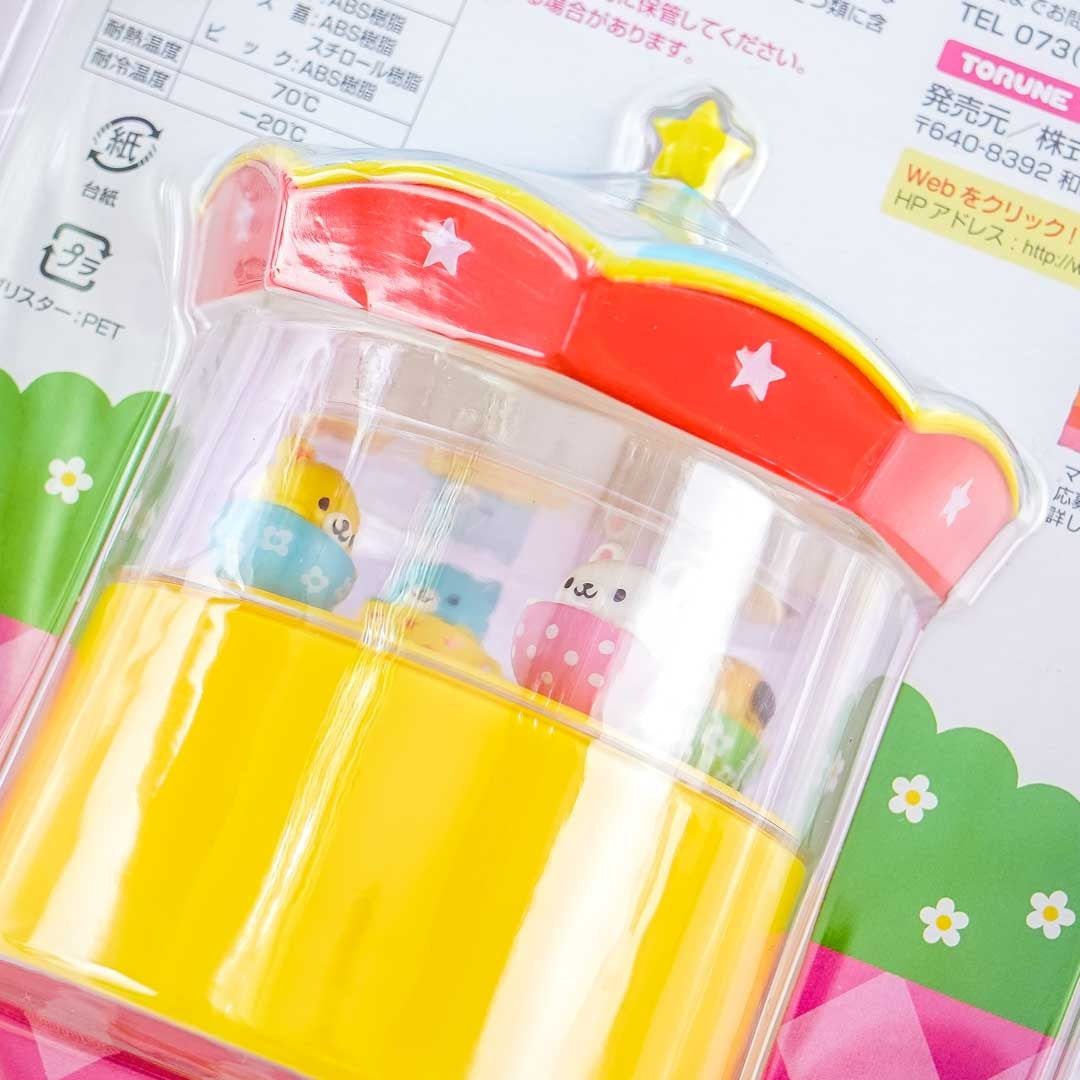 Transform normal lunches into kyarabens or cute bentos by decorating them with these reusable sticks! Each piece is made of food-safe plastic and is decorated with a kawaii animal in a cup. The four-piece set comes with a rotating coffee cup ride-inspired storage case which can easily fit up to eight kyaraben deco sticks! These are all not meant for microwave or dishwasher use.