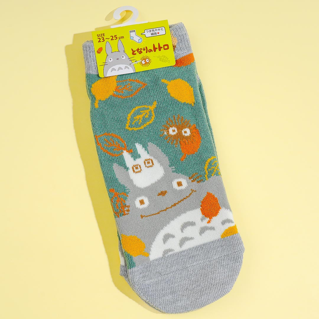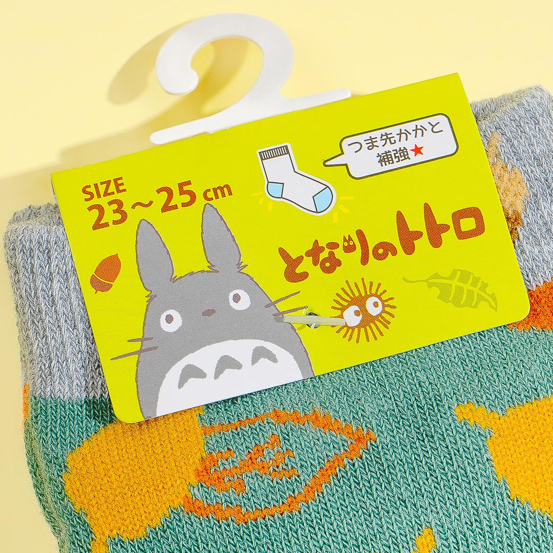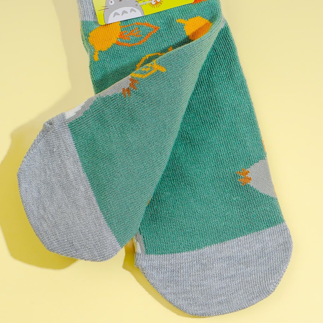 This kawaii pair of socks features Totoro hanging out with his buddies from the Ghibli classic, My Neighbor Totoro. Put on these socks while lounging around the house. each one has a reinforced toe and heel which makes it super comfy to wear.