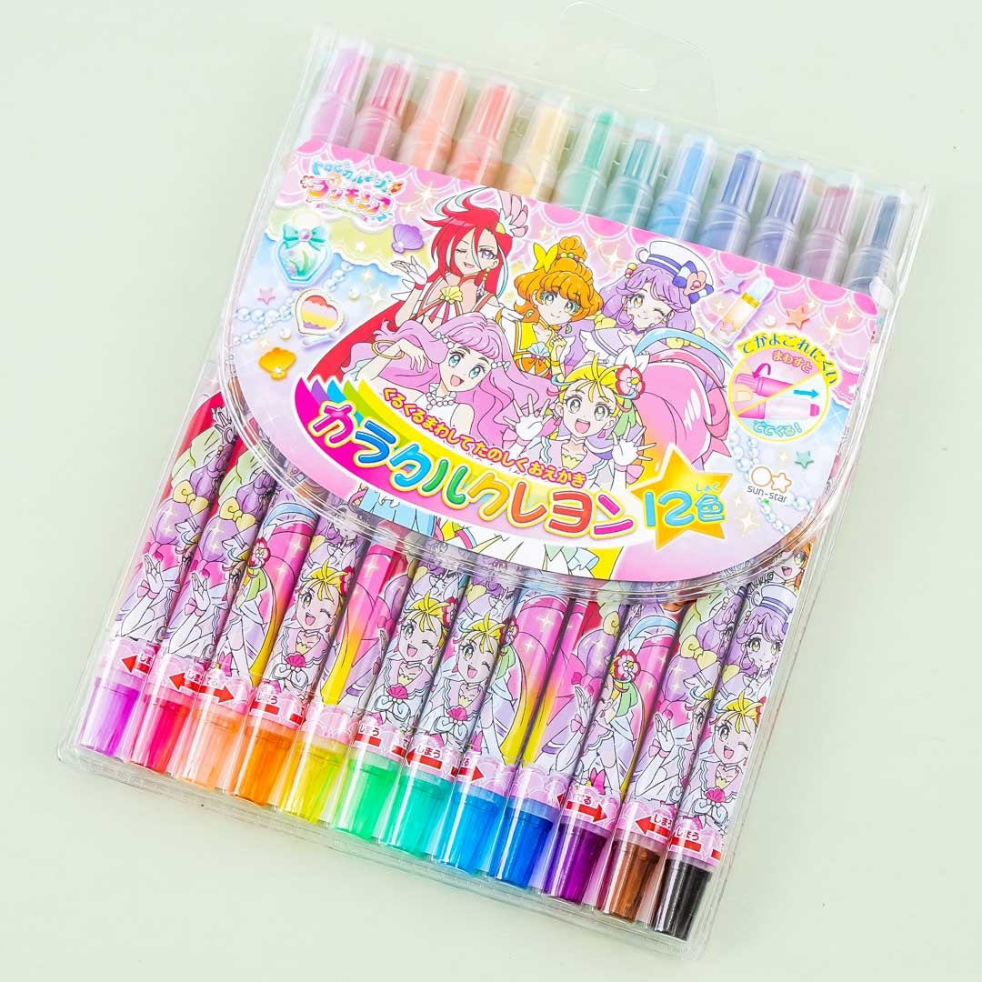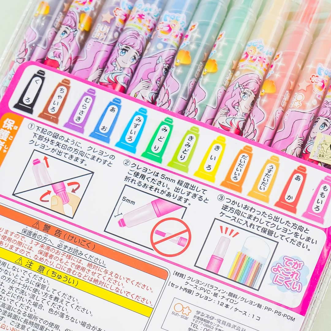 Add a dose of fun when drawing or coloring your favorite characters with this 12-piece set of crayons featuring characters from the anime series Tropical-Rogue! Pretty Cure! Just twist the bottom to make the tip of the crayon longer or shorter!