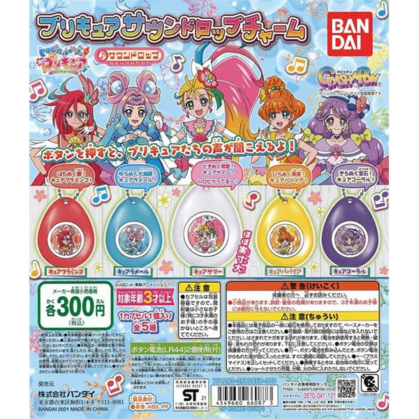 Add this super cute sound drop charm to your Pretty Cure collection! It comes from the Tropical-Rouge! Precure Sound Drop Charm Gachapon series which features charms with prints of different Tropical-Rogue! characters. Each charm allows you to hear the voice of the character when you press the button! These charms already come with a battery. Collect all five designs in the series!