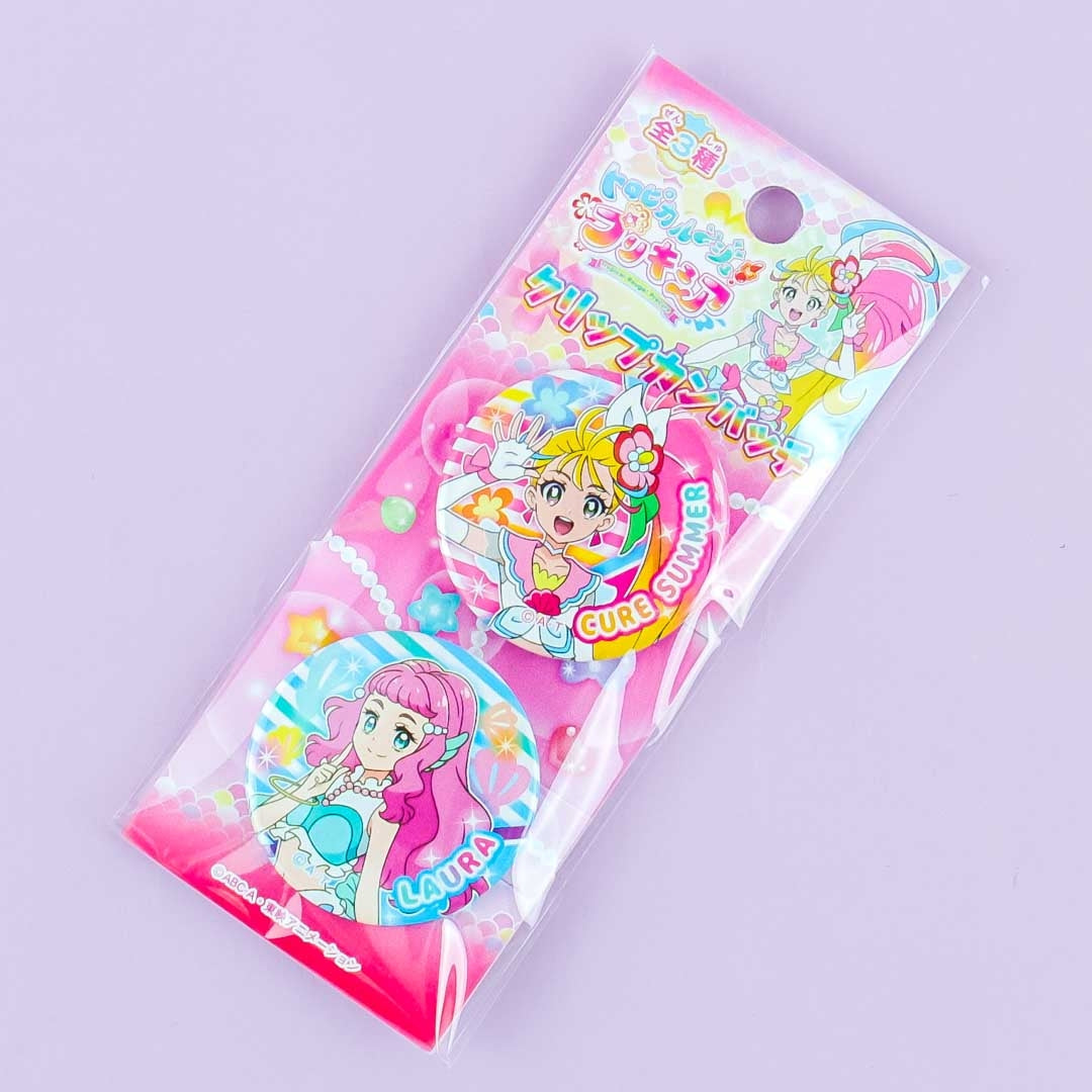 • A kawaii set of clip badges featuring Tropical Rouge characters Cure Summer and Laura
