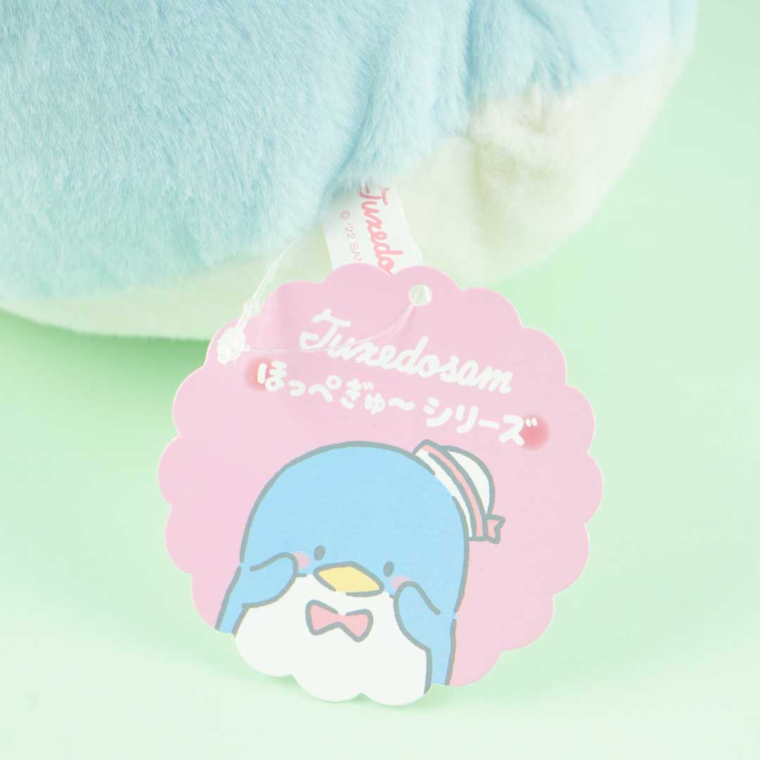 Sleep soundly as you snuggle with this kawaii Tuxedosam plushie! This medium-sized cutie is wearing a matching pink ribbon and beanie. You can also have fun playing with this sitting plushie.