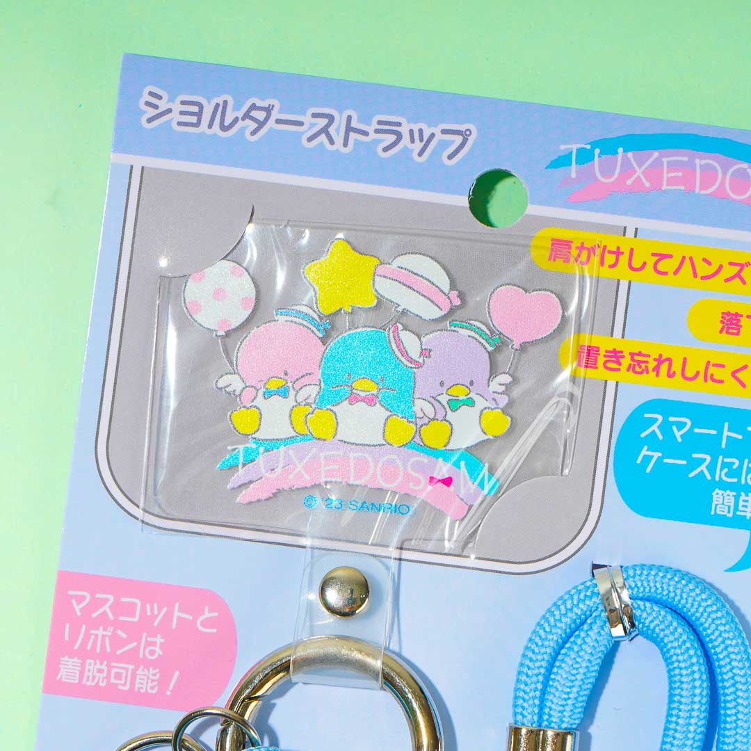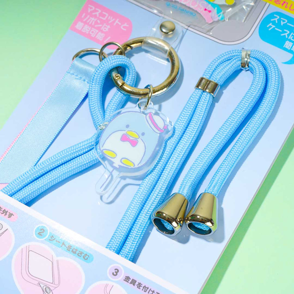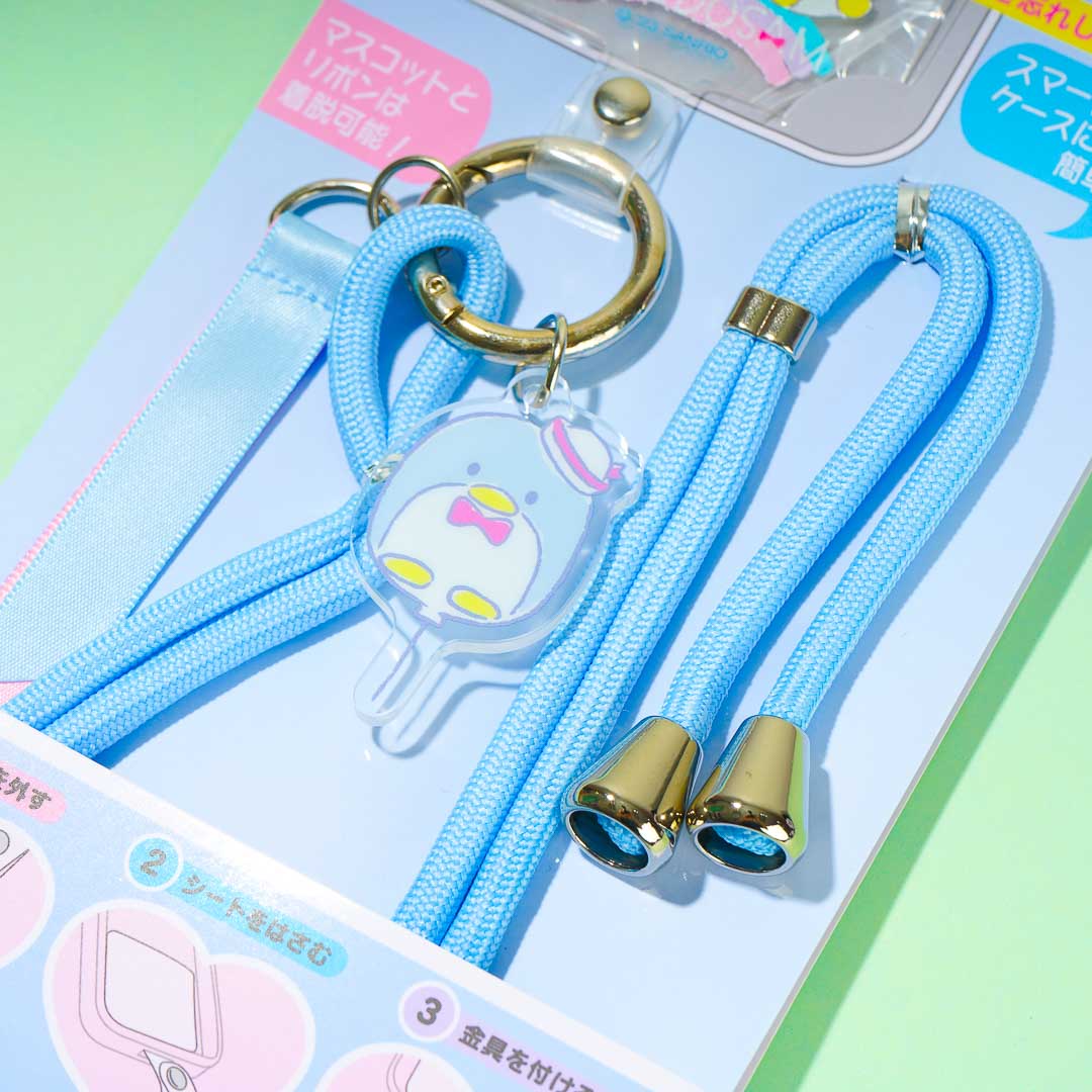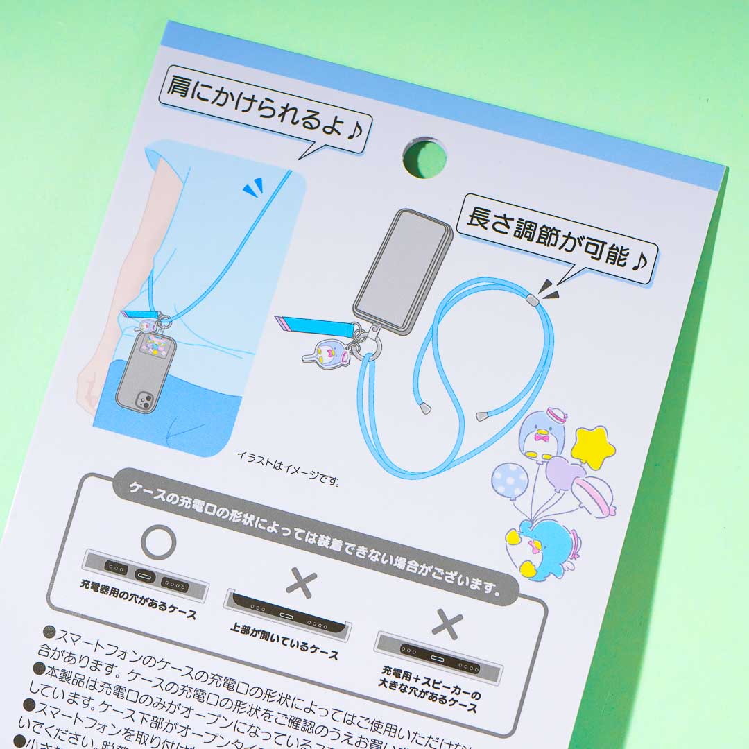 Attach your phone to this strap and sling it over your shoulder like a shoulder bag! The strap is adjustable and comes with a kawaii ribbon and Tuxedosam acrylic charm. Just attach your phone to the metal carabiner and you don't have to worry about losing your phone!