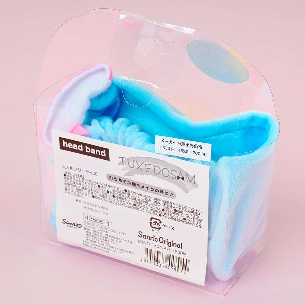 This fluffy kawaii hairband is perfect for your nightly routine! It's decorated with Tuxedosam's cute face with his signature bow tie and hat.