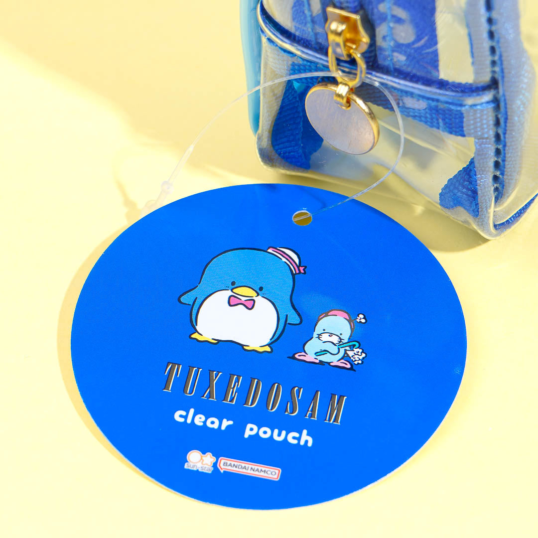 This cute square pouch is covered in prints of Tuxedosam playing around and relaxing! It's made of clear material so you can see what's inside. Use it to storey your knick-knacks!