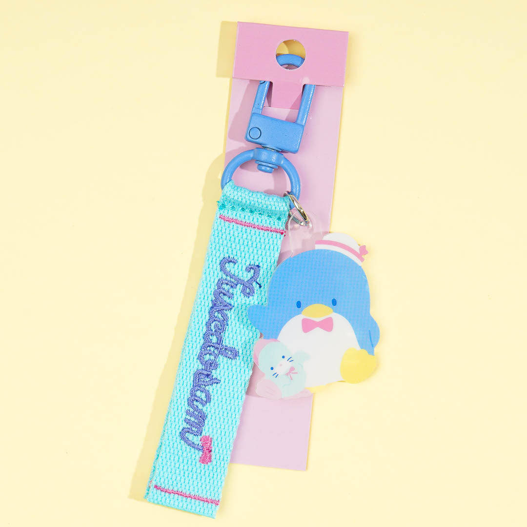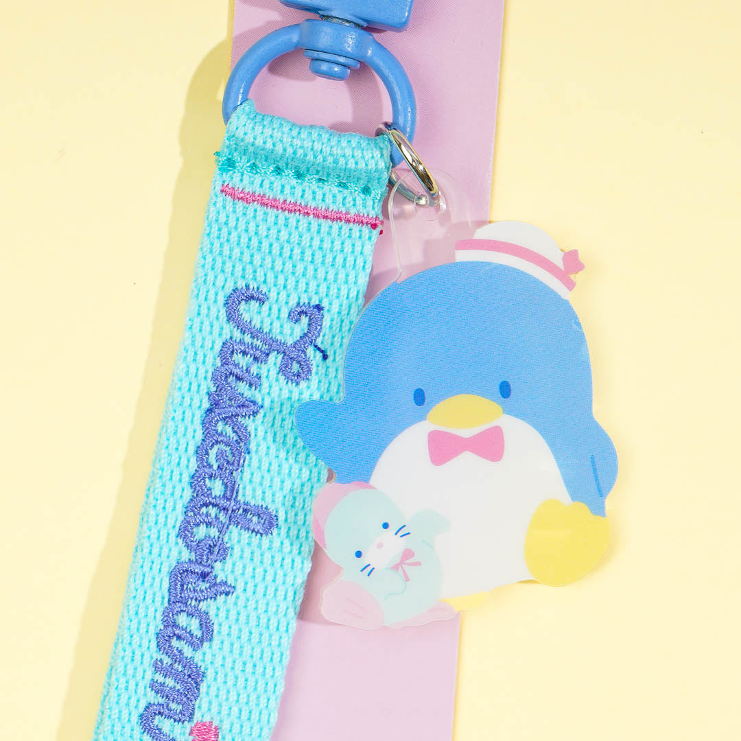 Keep your locker keys from getting lost by attaching them to this kawaii holder! This super cute keychain has both an embroidered name cloth tag and a matching character charm of Tuxedosam.