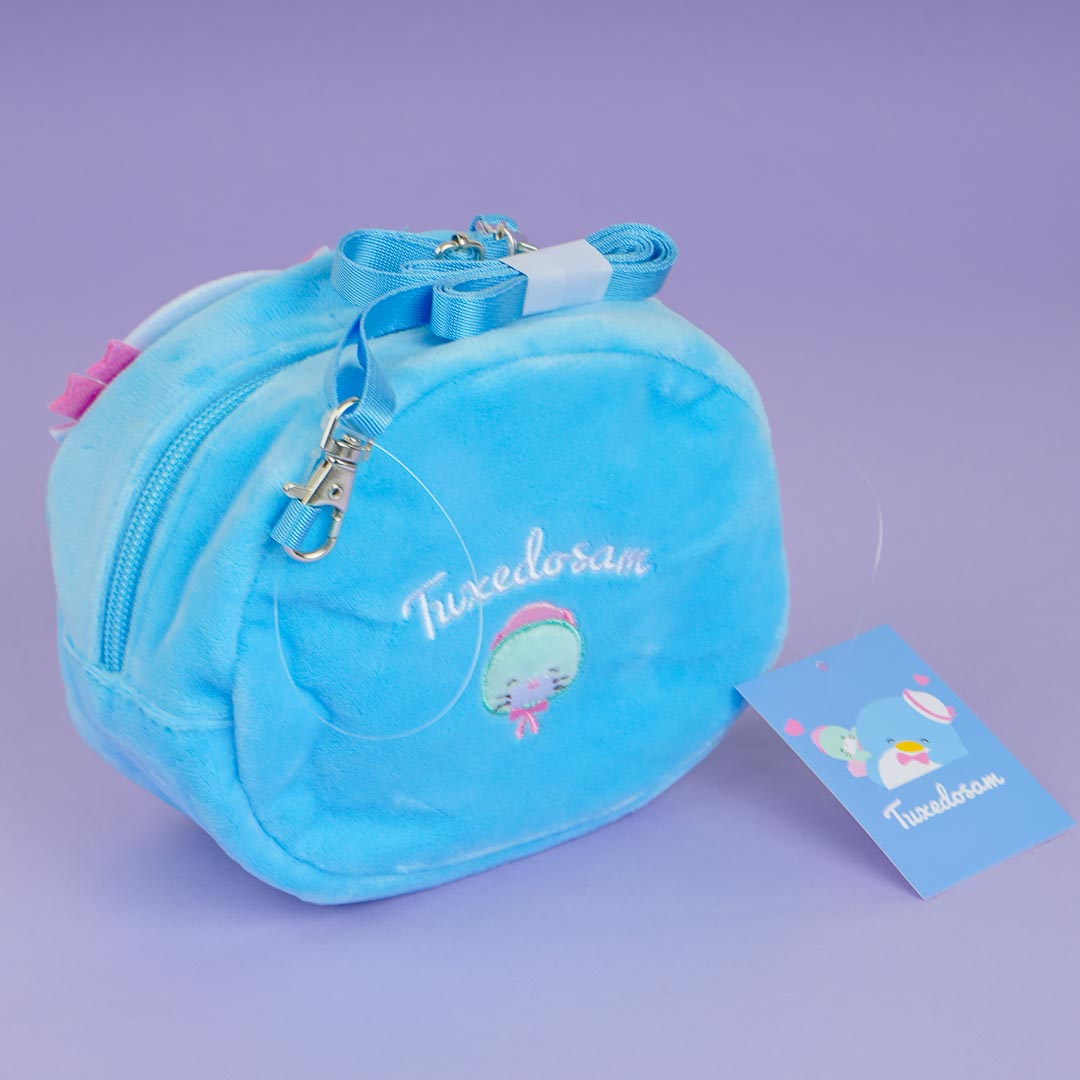This kawaii zippered sling bag is great for looking cute while you're out shopping! It features Tuxedosam's face in front with pop-out ears and his embroidered name at the back.