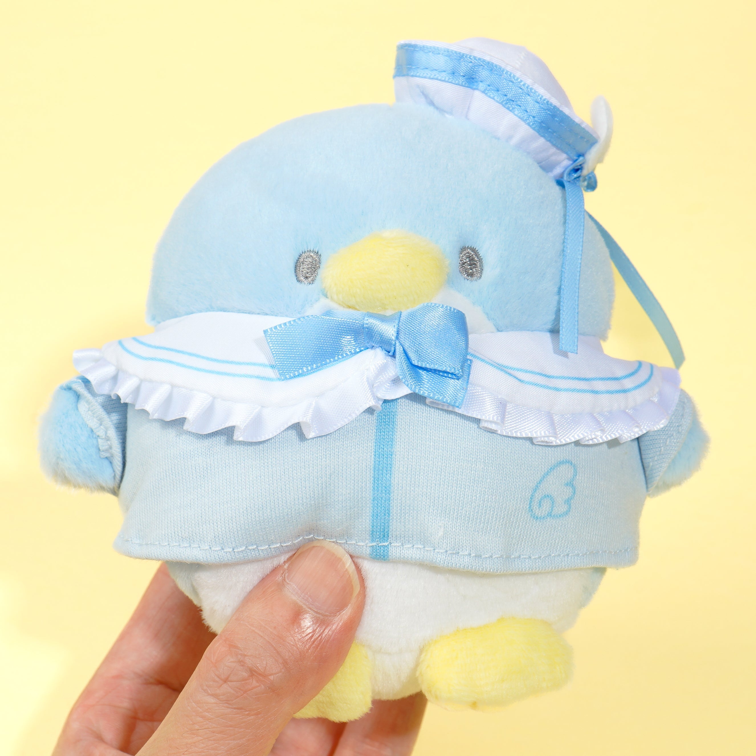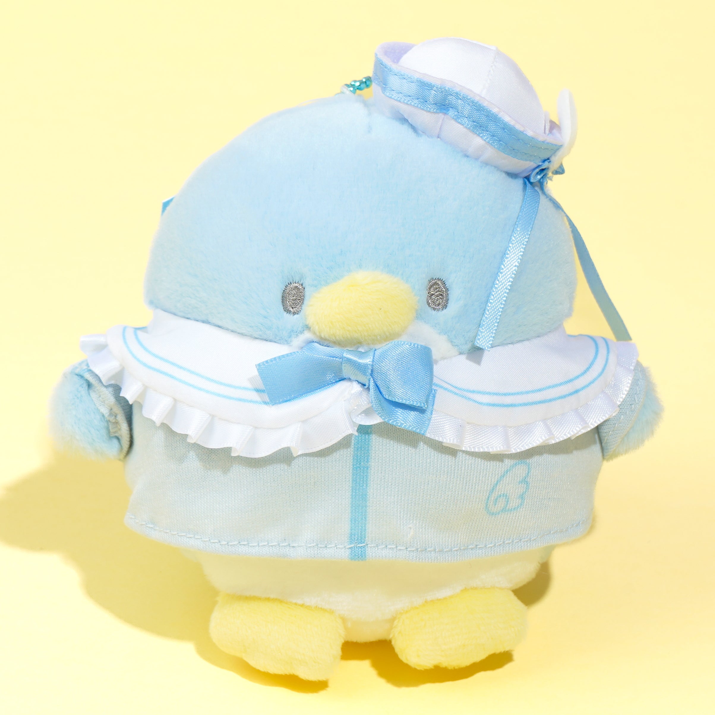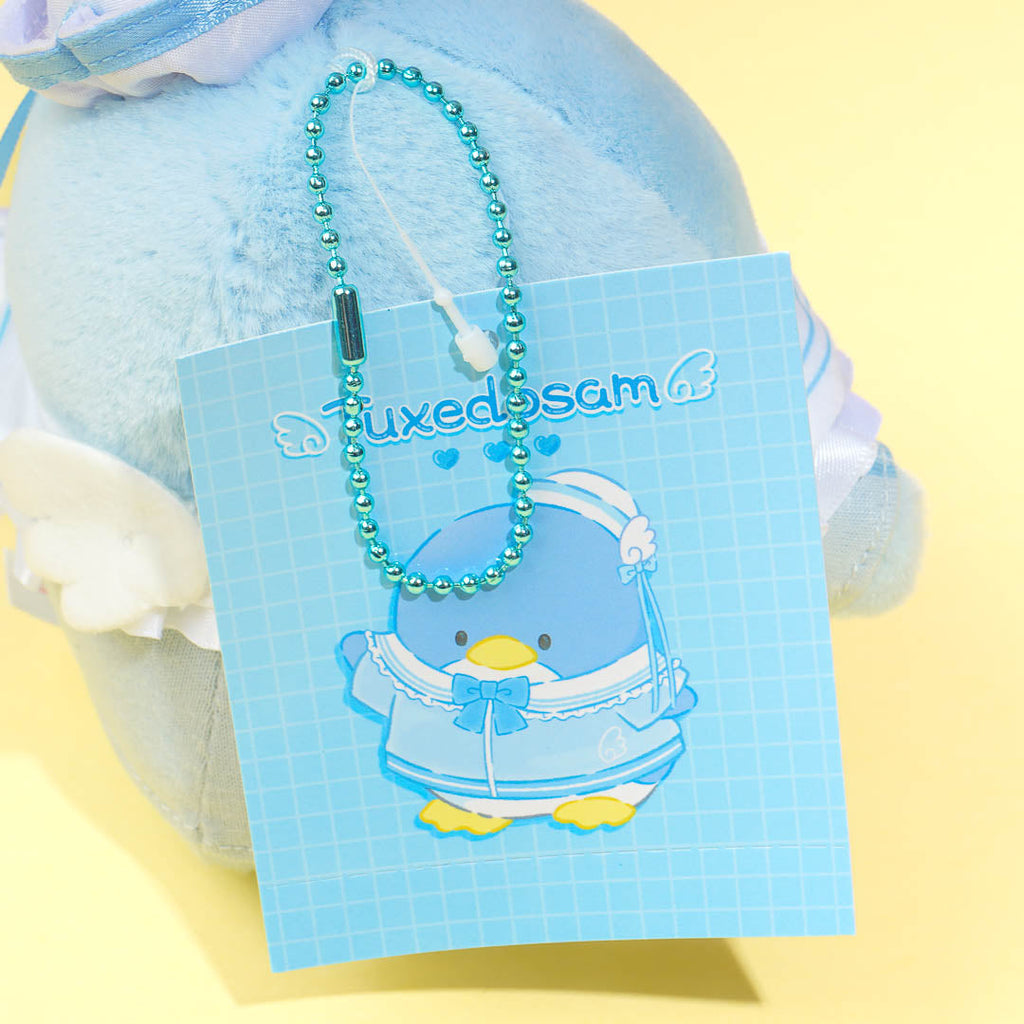 Go on adventures together with this cute Tuxedosam plushie charm from Sanrio's Light Blue Days collection. This medium-sized stuffed toy is dressed in a kawaii sky-blue outfit! Attach it to your fave backpack with its removable ball chain.