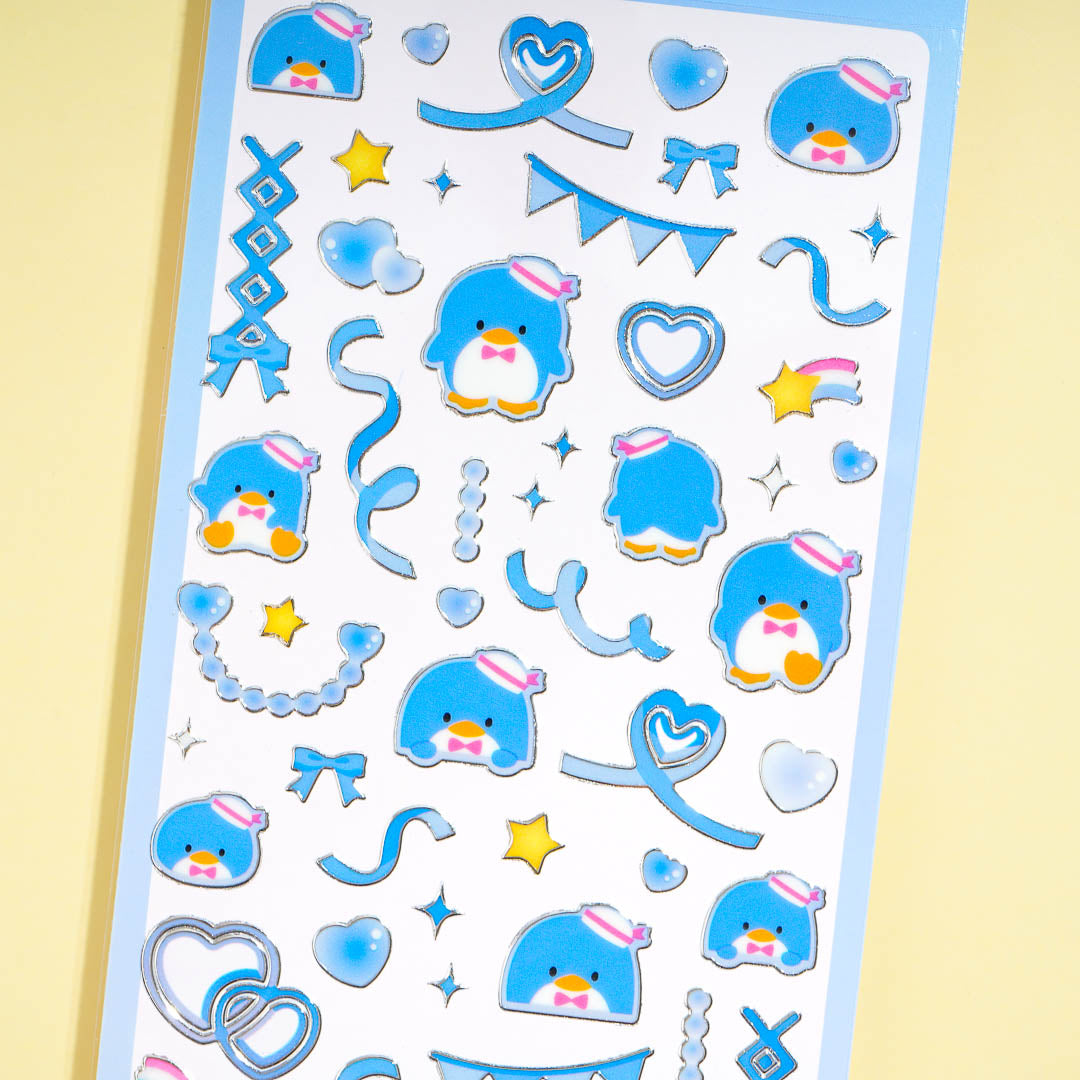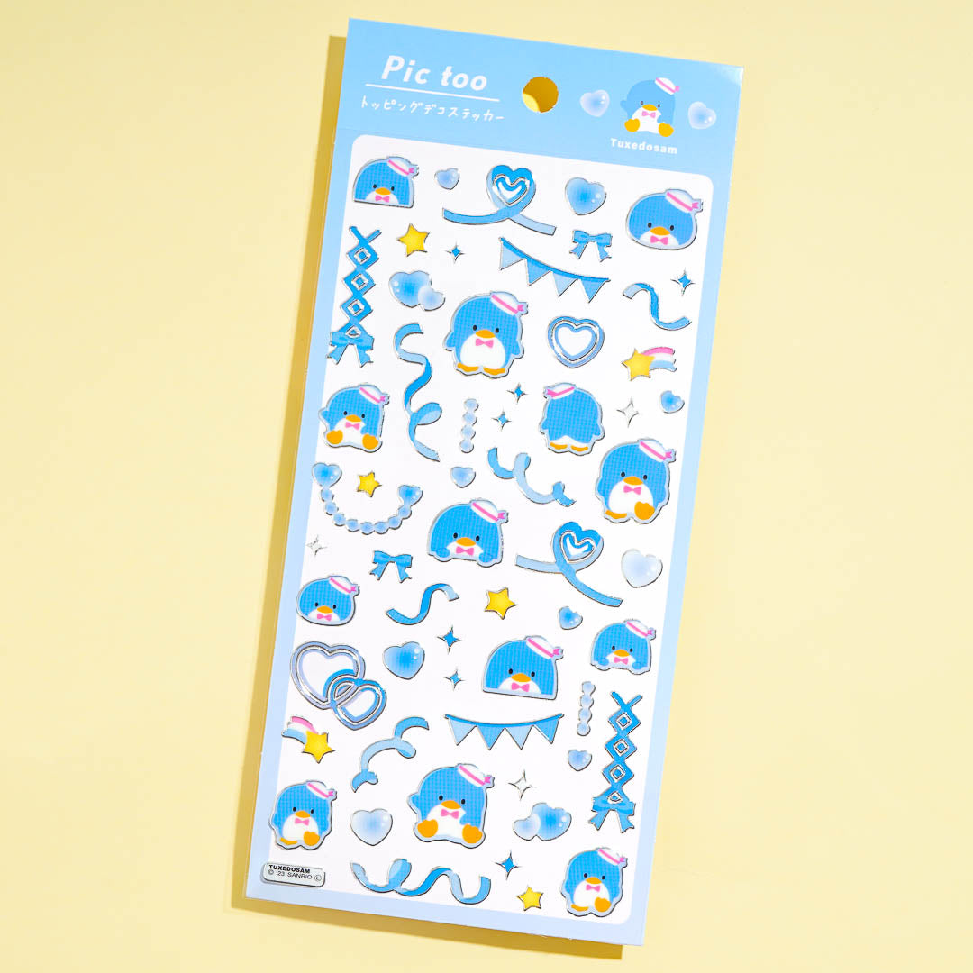 This cute sheet of stickers showcases Tuxedosam with party decors! Use these stickers to decorate your diary. Each sticker has cute silver accents.