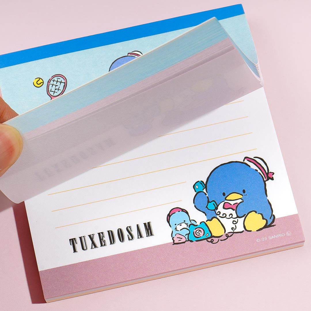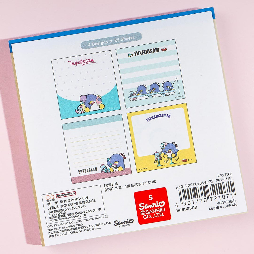 Have fun writing important notes and reminders on this square memo pad! It features cute prints of a retro-style Tuxedosam with his favorite things.