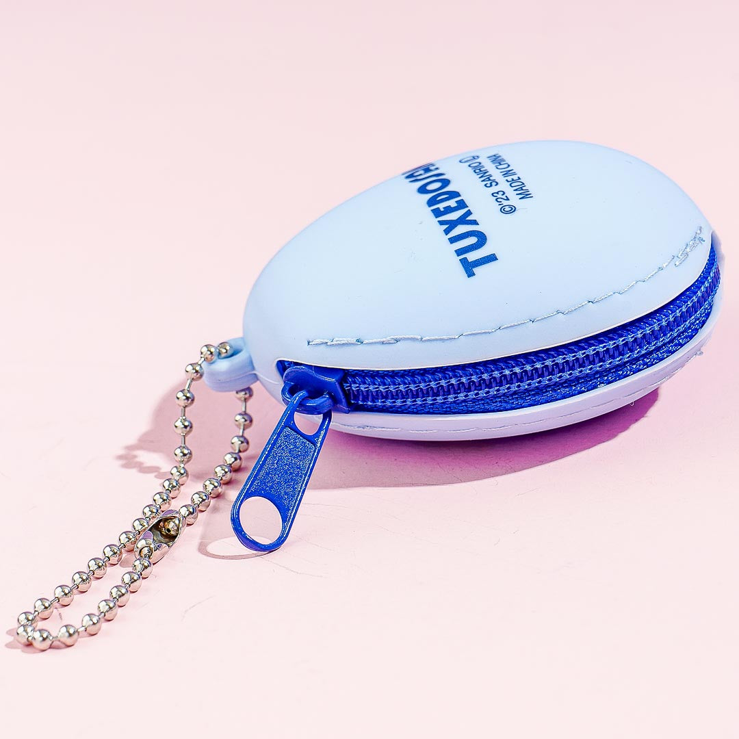 This kawaii ice blue pouch has a distinct egg shape, decorated with a super cute illustration of Tuxedosam holding an ice cream cone, and comes with a removable ball chain! You can keep small knickknacks inside or use it as a lovely bag charm as well.