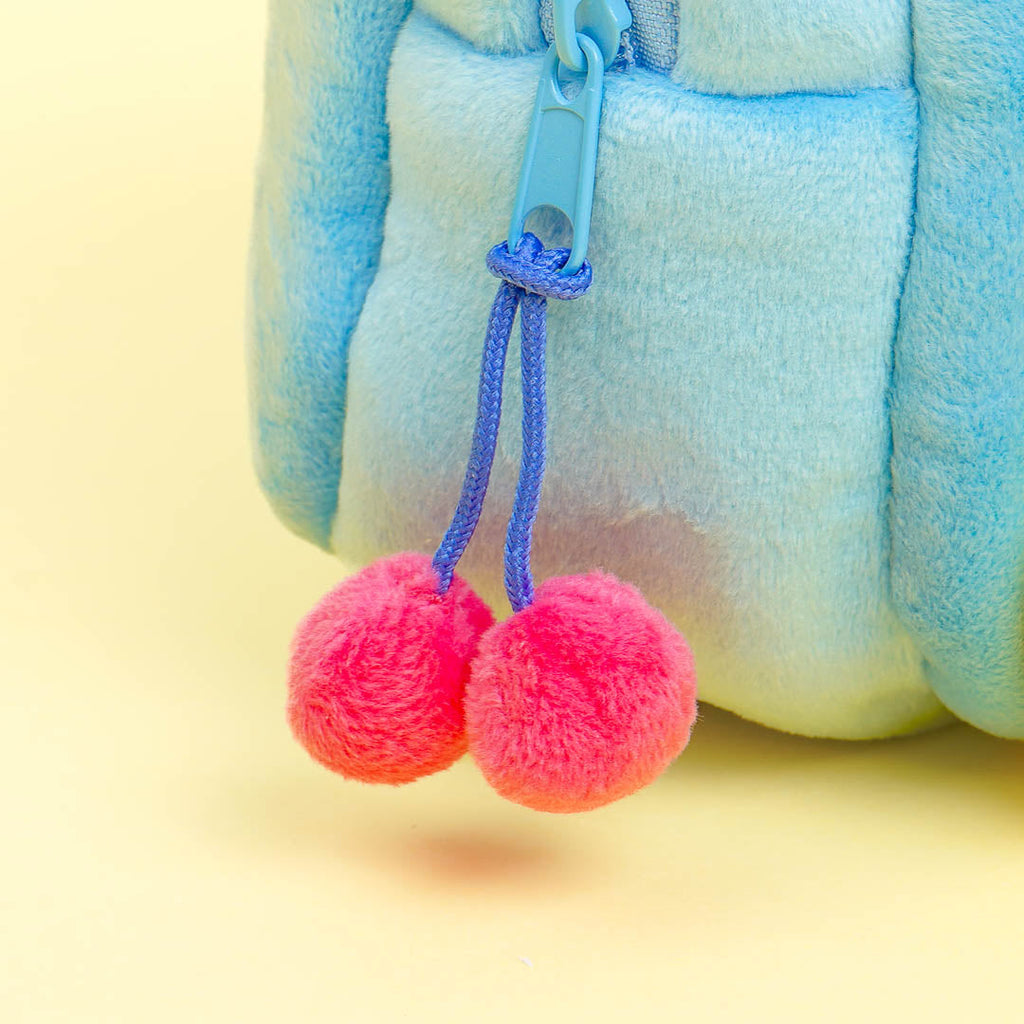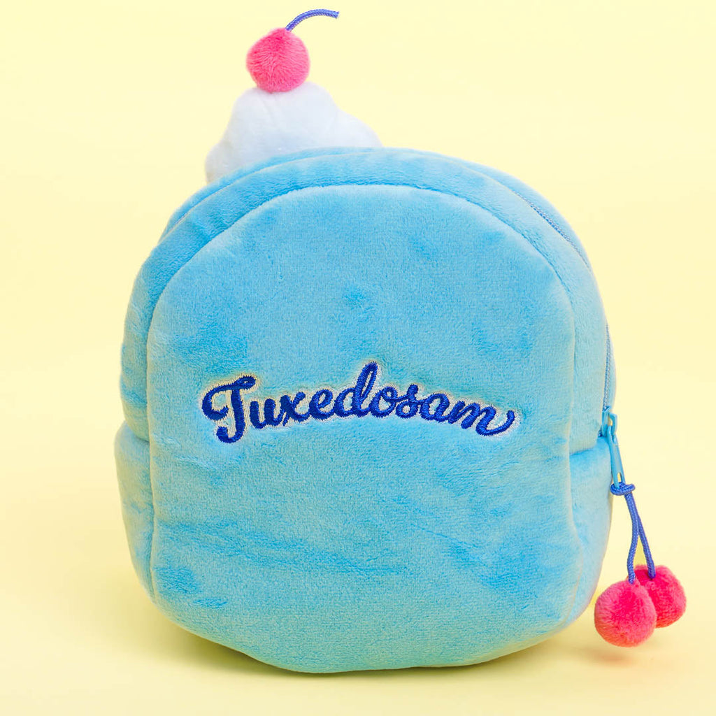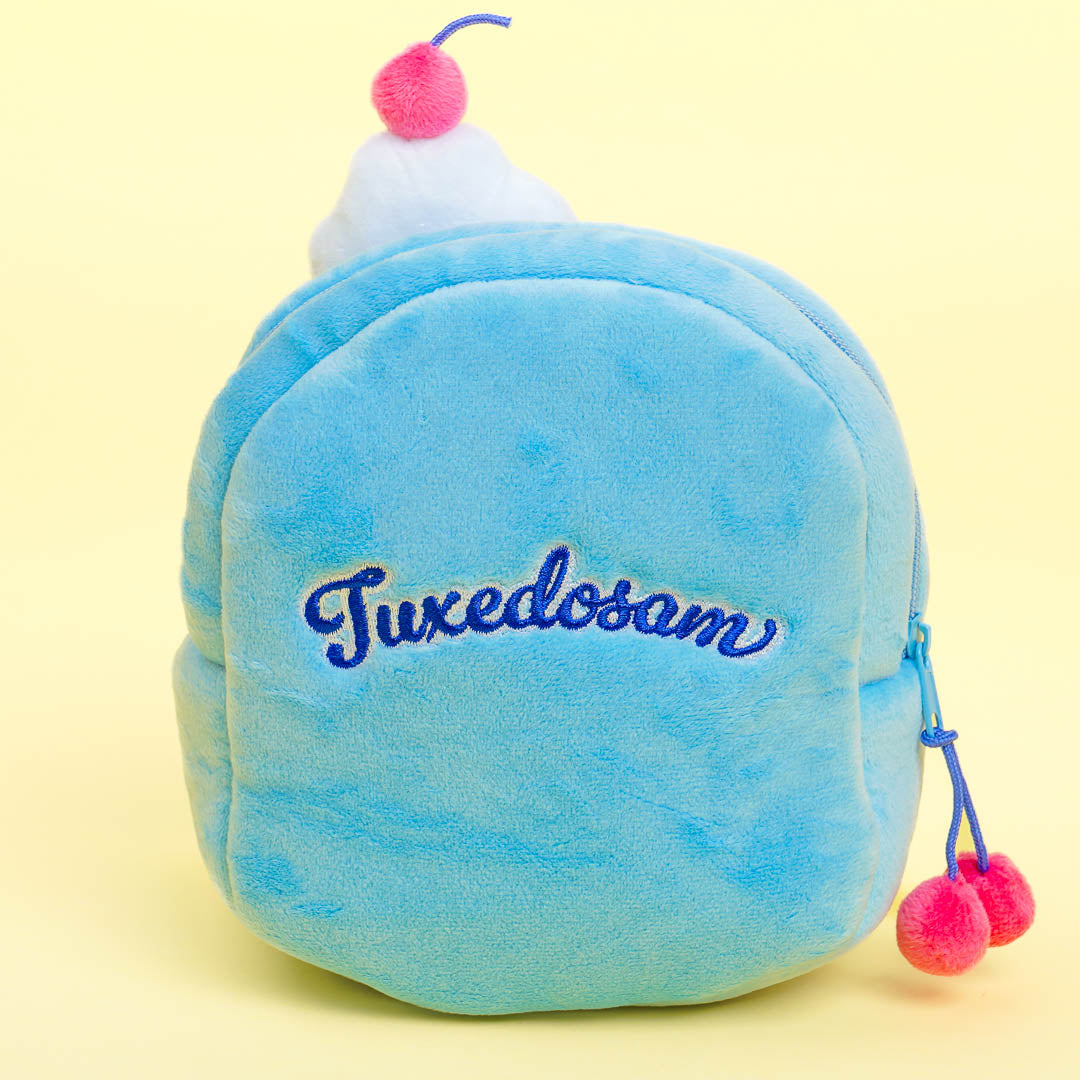 Keep your cosmetics inside this super cute and fluffy pouch! It's shaped like a Tuxedosam plushie, with a fluffy Sundae decor on top and Tuxedosam's name embroidered at the back. For added cuteness, the zipper handle has a string cherry charm!