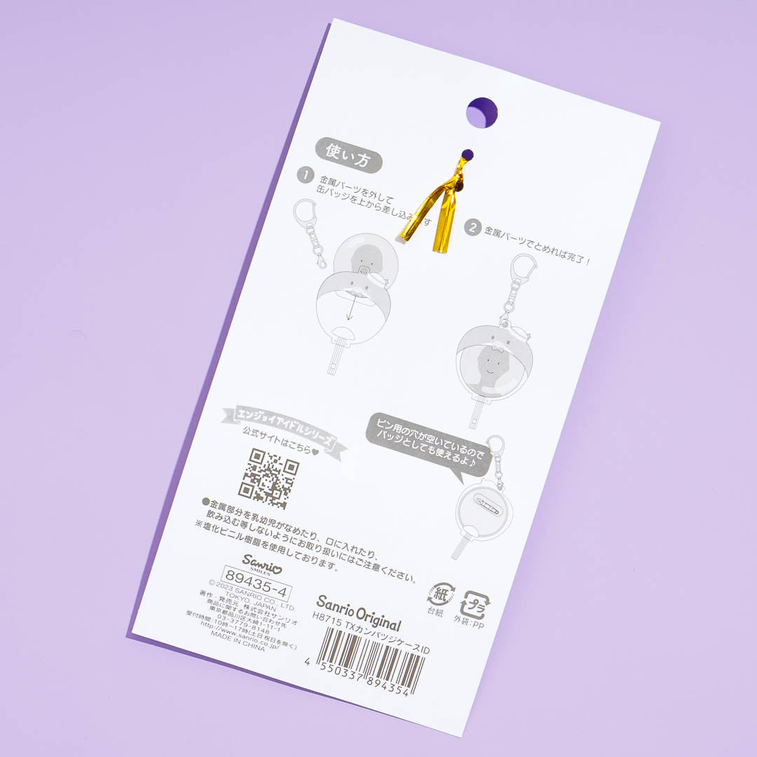 Add an extra touch of cuteness to your can badge with this super cute clear case! It features Tuxedosam shaped like an uchiwa fan. You can attach this charm to your bag in two ways — pin the badge or attach the case using the removable metal hook.
