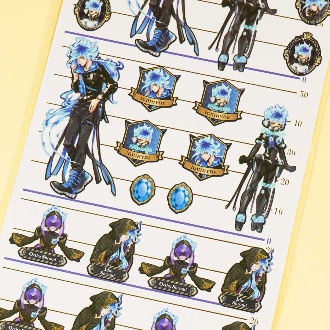 A sheet of stickers featuring the students of Ignihyde from Twisted Wonderland